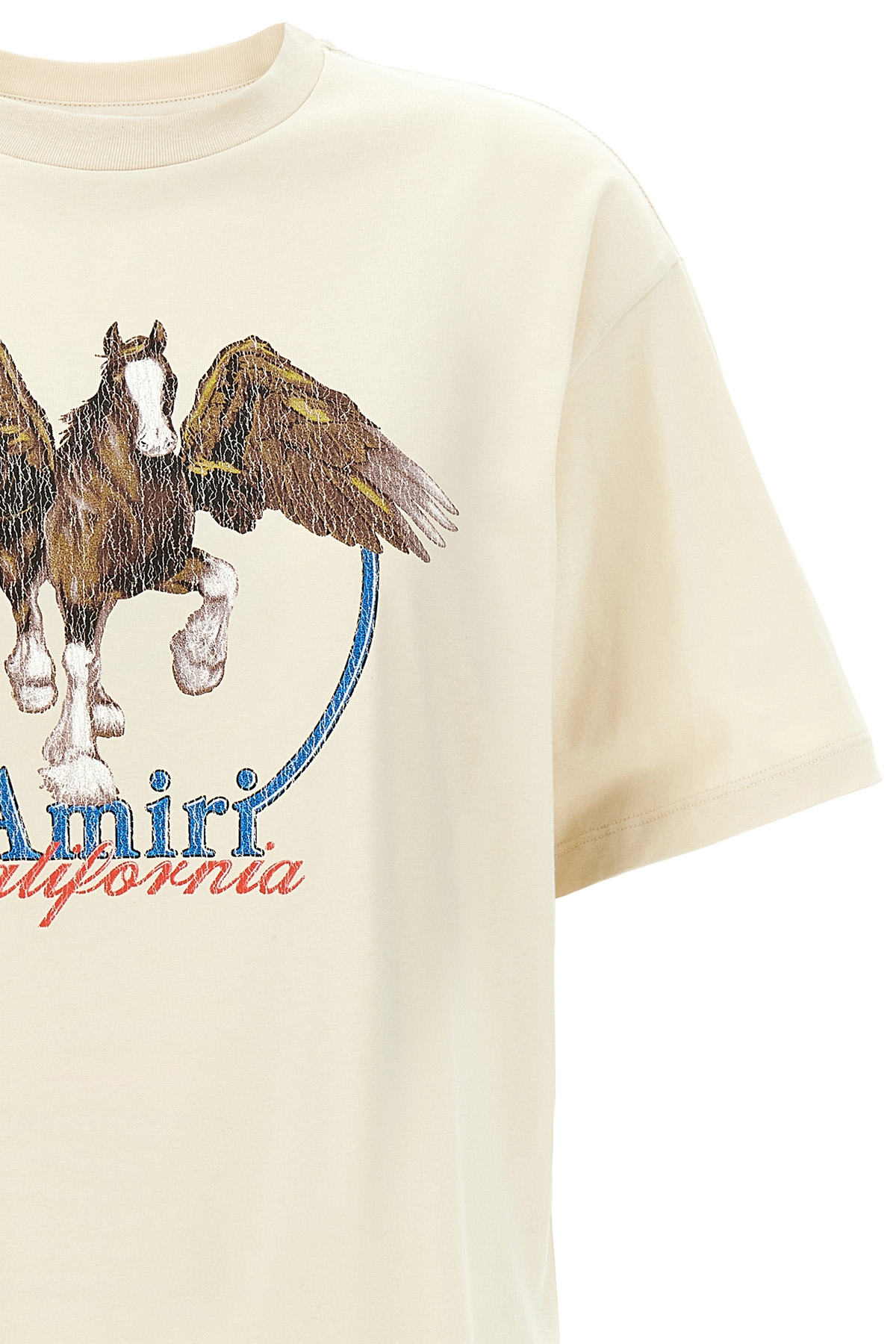 'Pegasus' cotton T-shirt with vintage front print, crew neck, short sleeves.