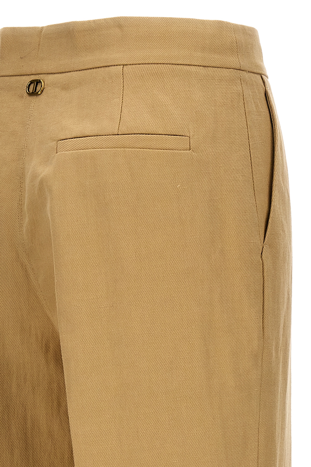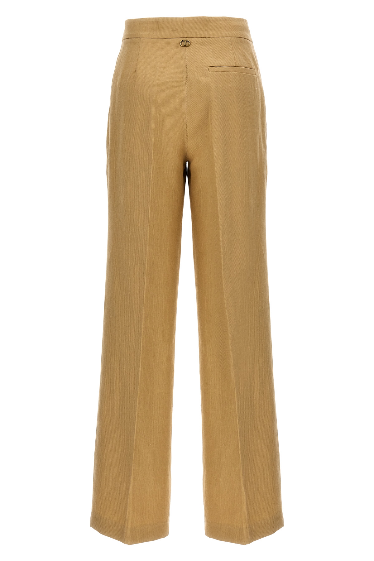Elegant pants in lingo cotton blend with wide leg with central crease.