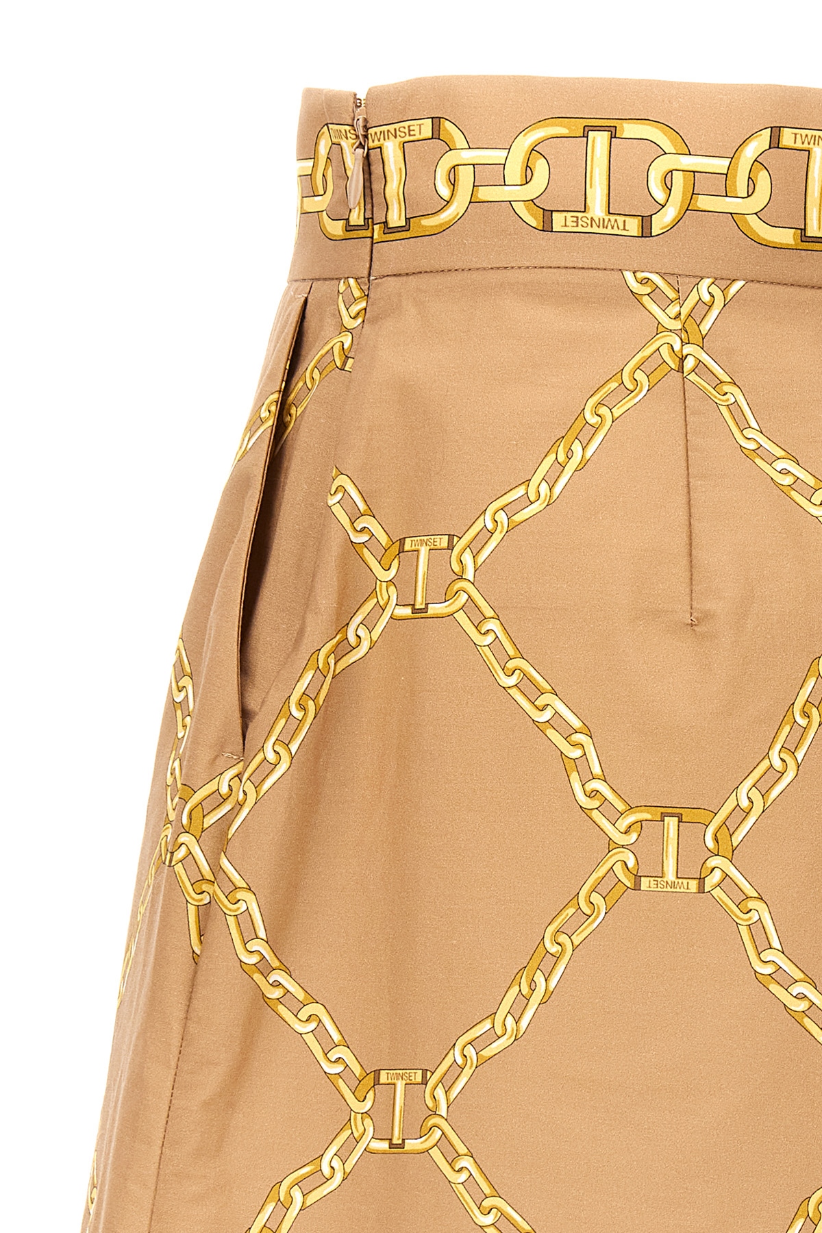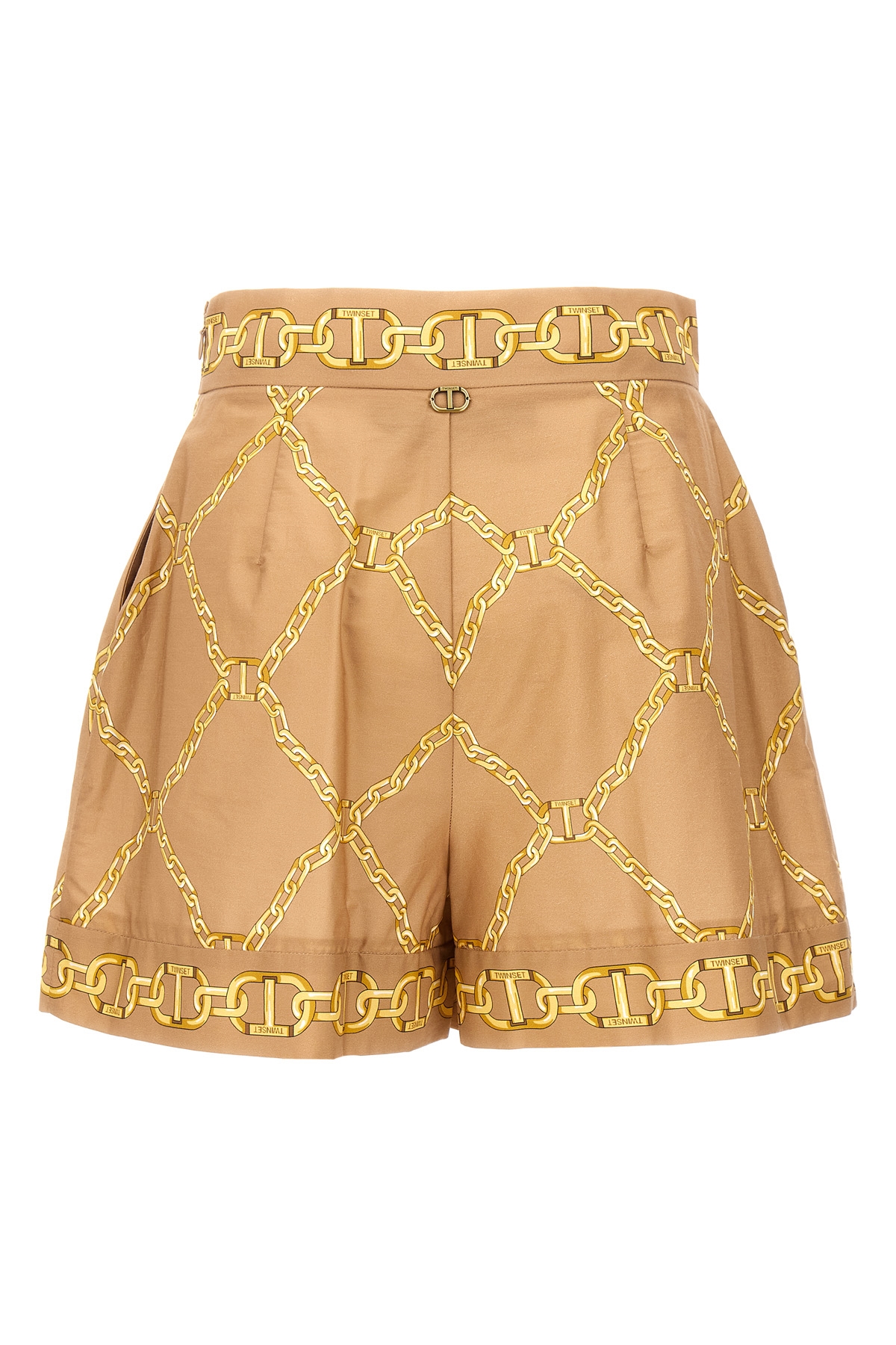 Cotton poplin shorts with all-over print, front pleats, pockets, side zip closure.