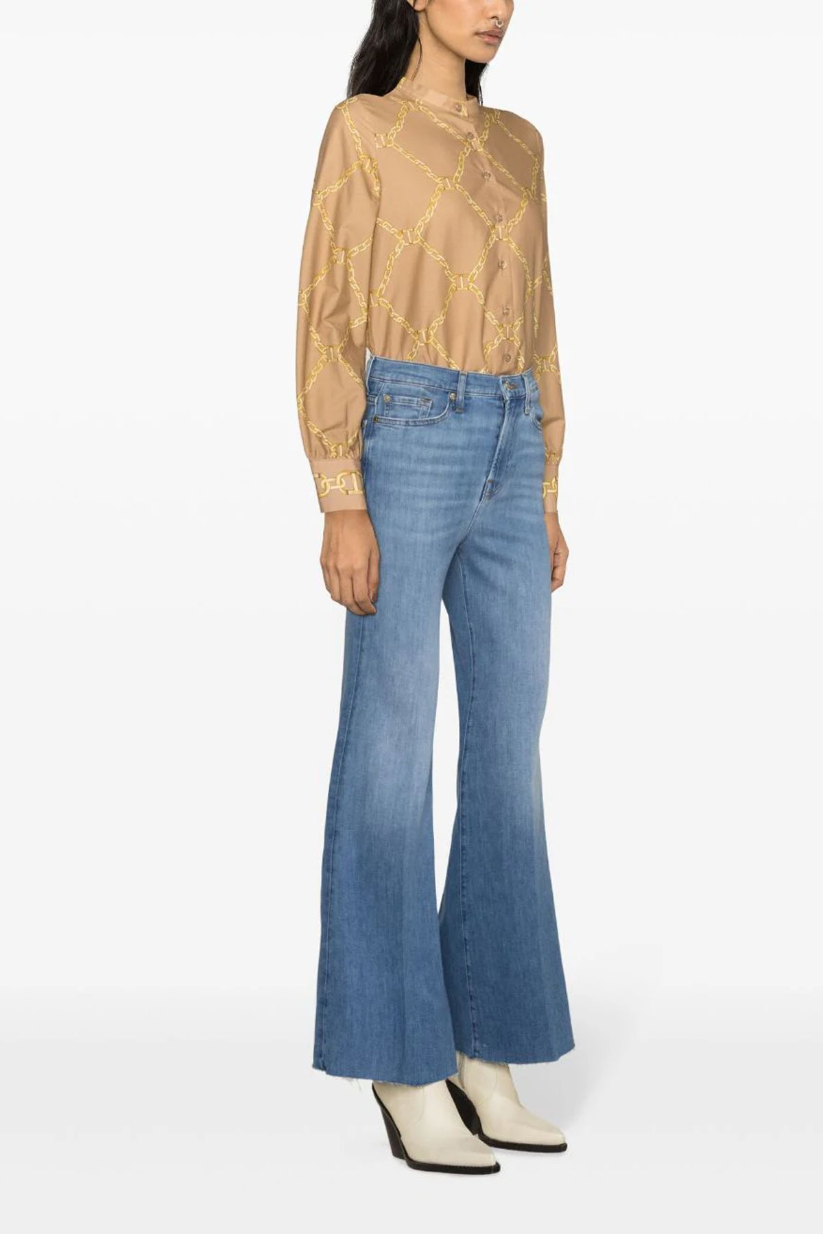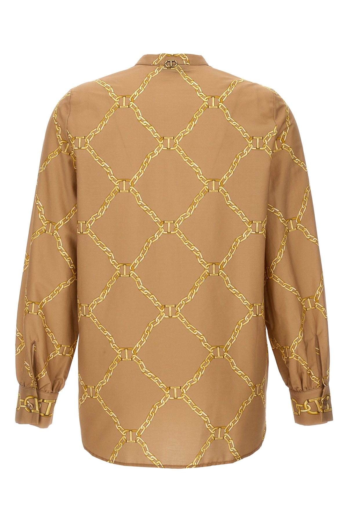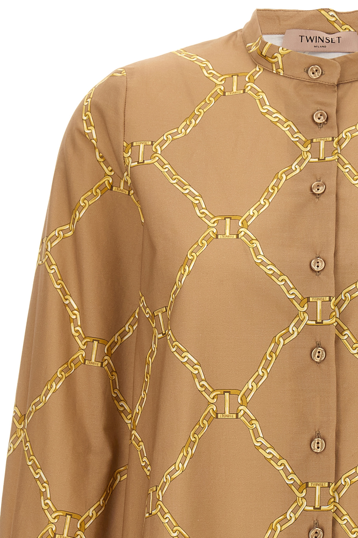 Cotton poplin shirt with print, button closure, long sleeve with cuff.