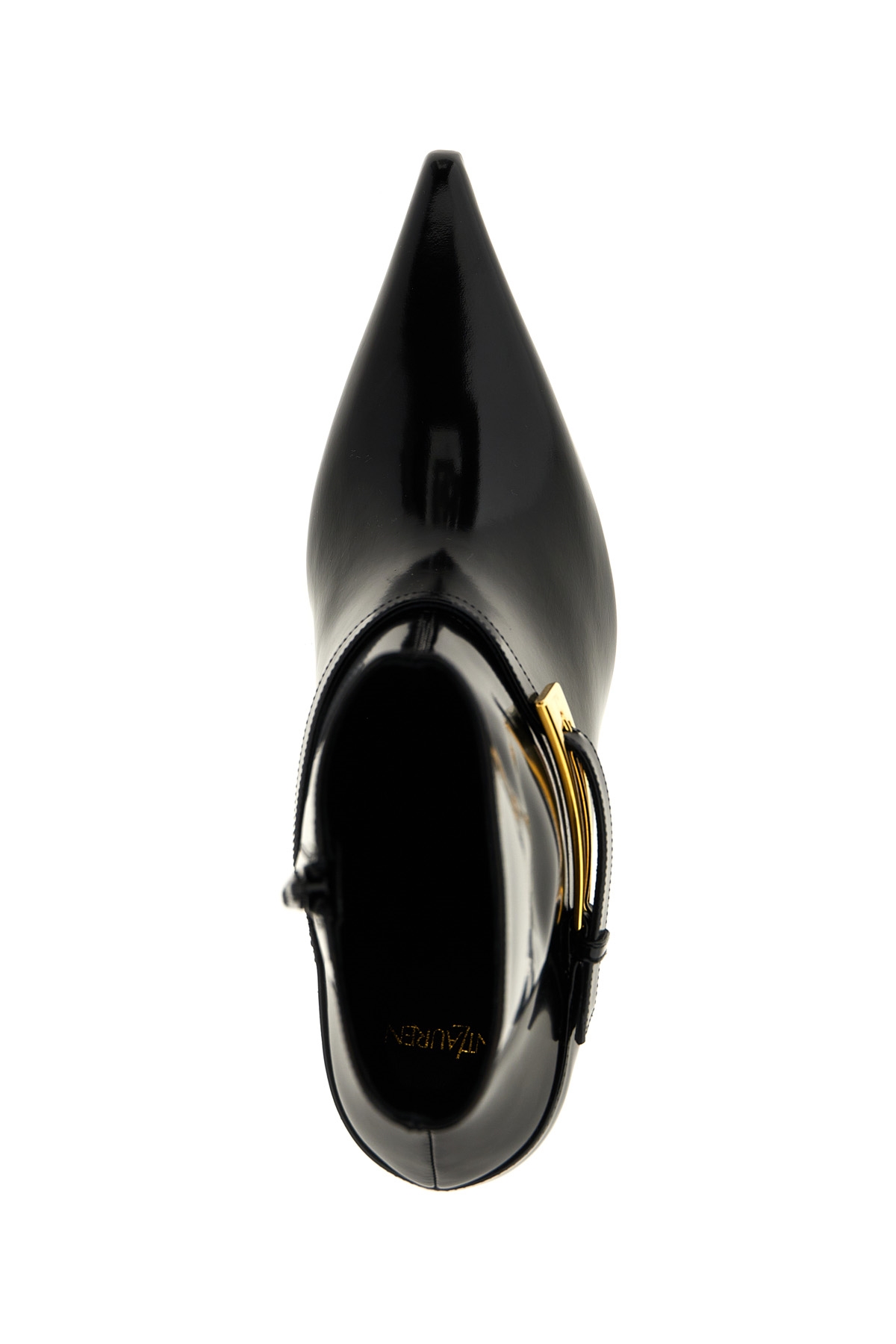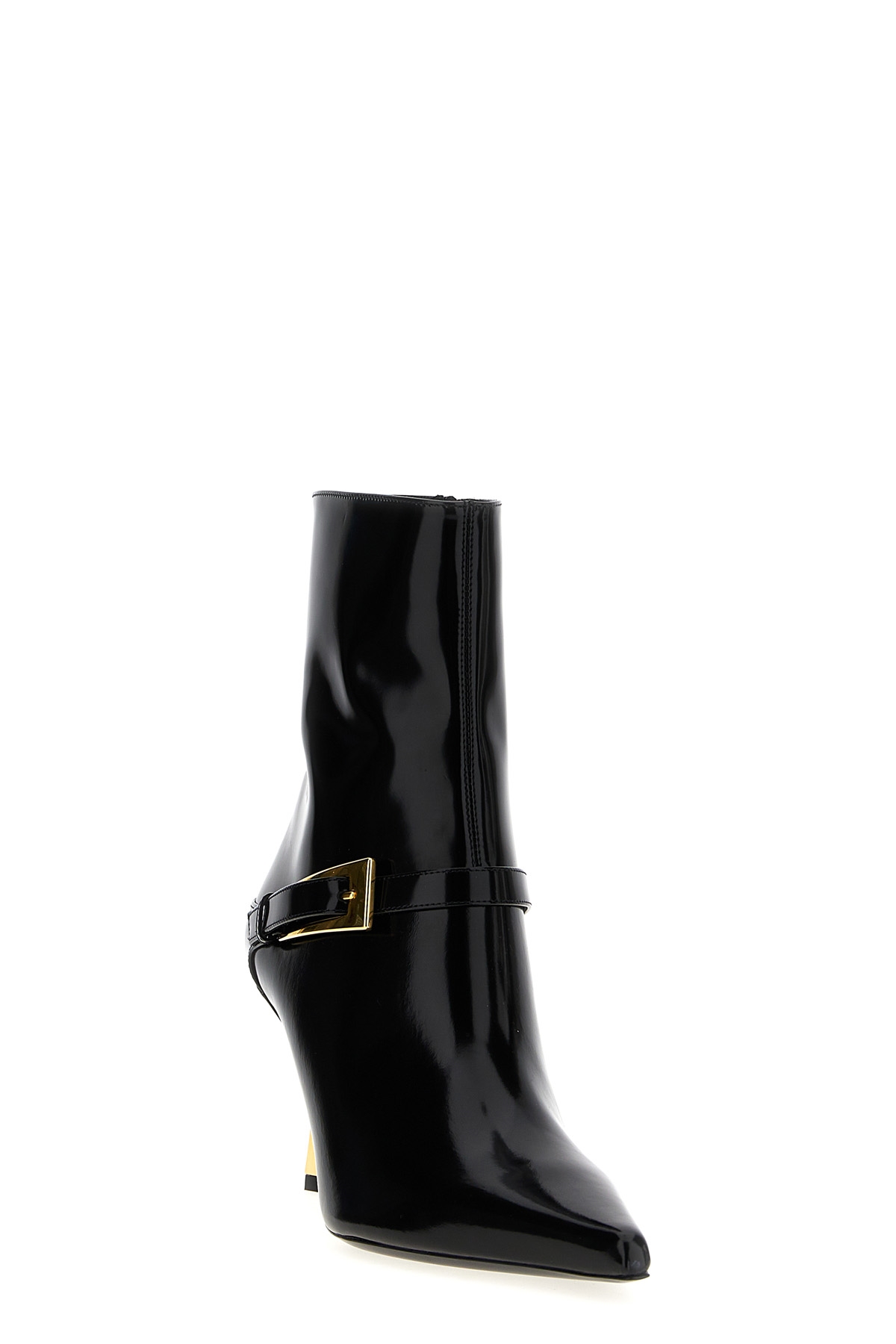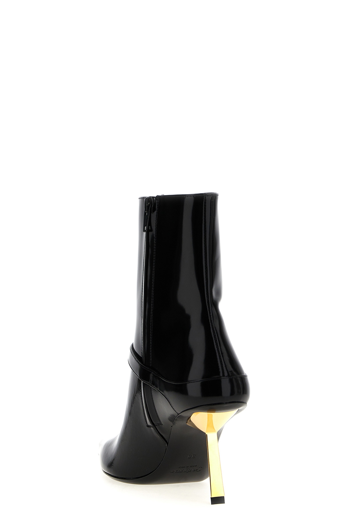 'Lee' leather ankle boots, strap detail with metal buckle, plated geometric heel, side zip closure.