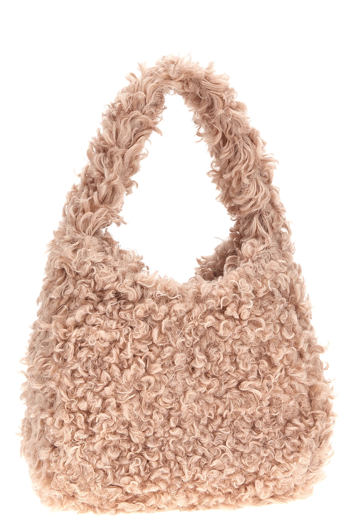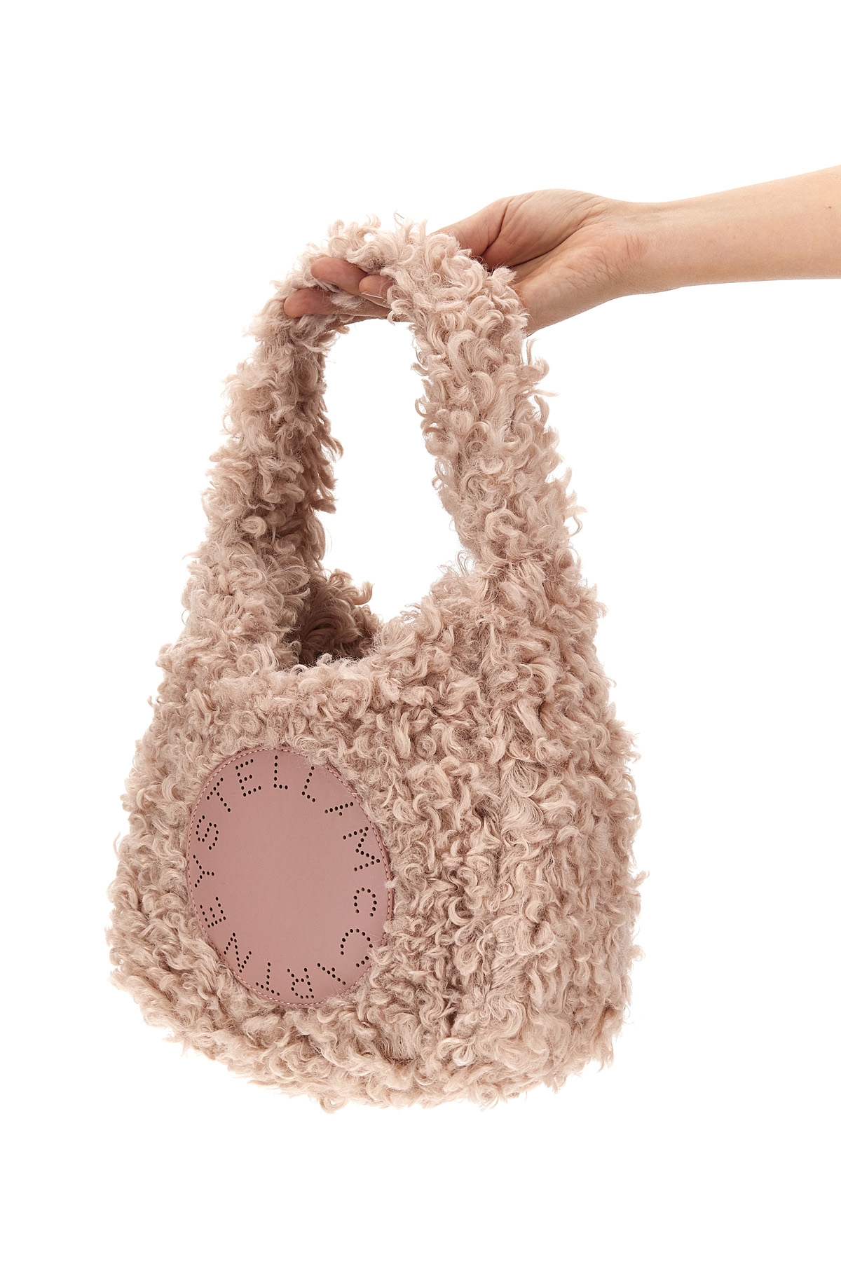 Small 'Tote Hobo' shoulder bag in teddy fabric with front perforated logo, fixed handle, magnetic closure.