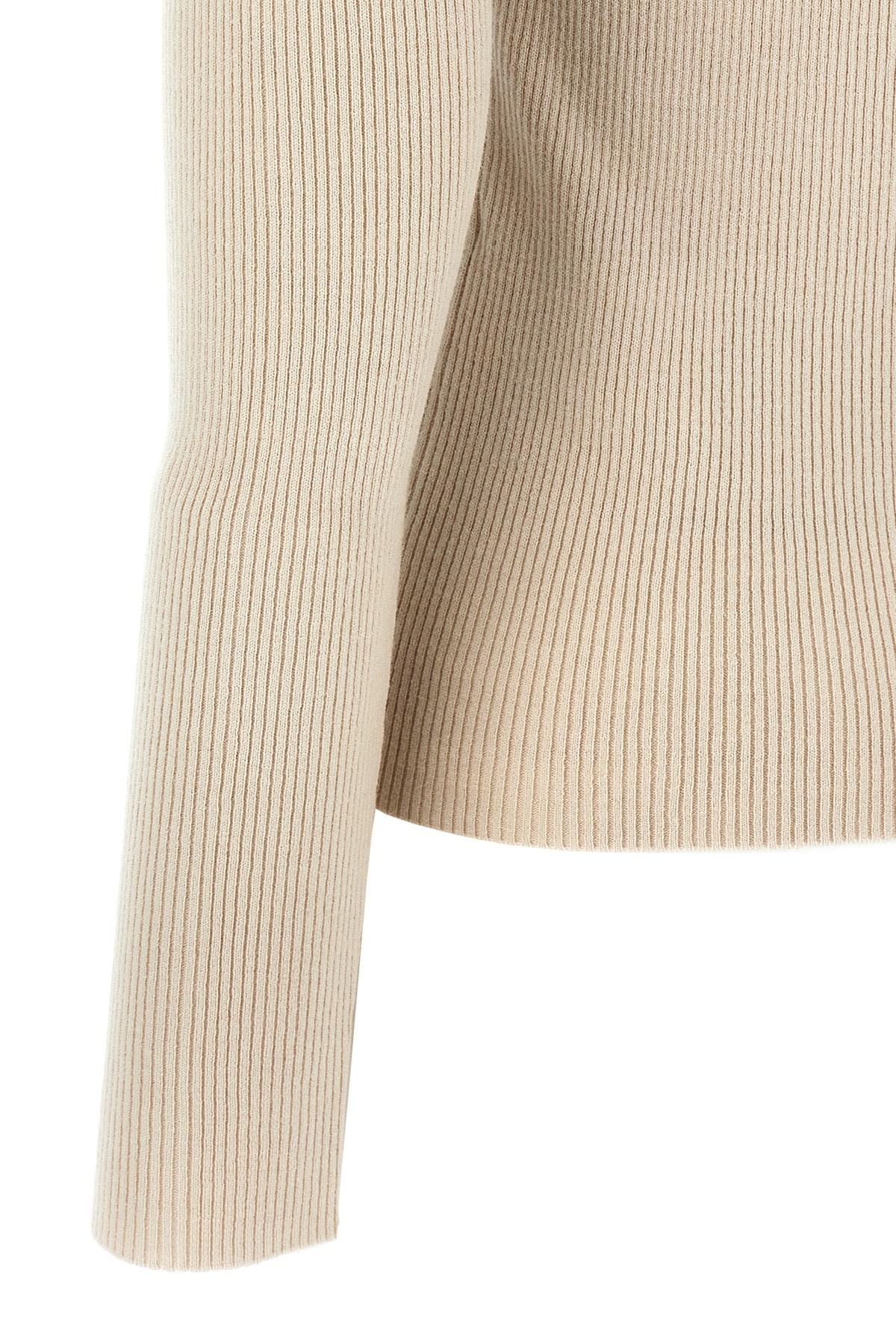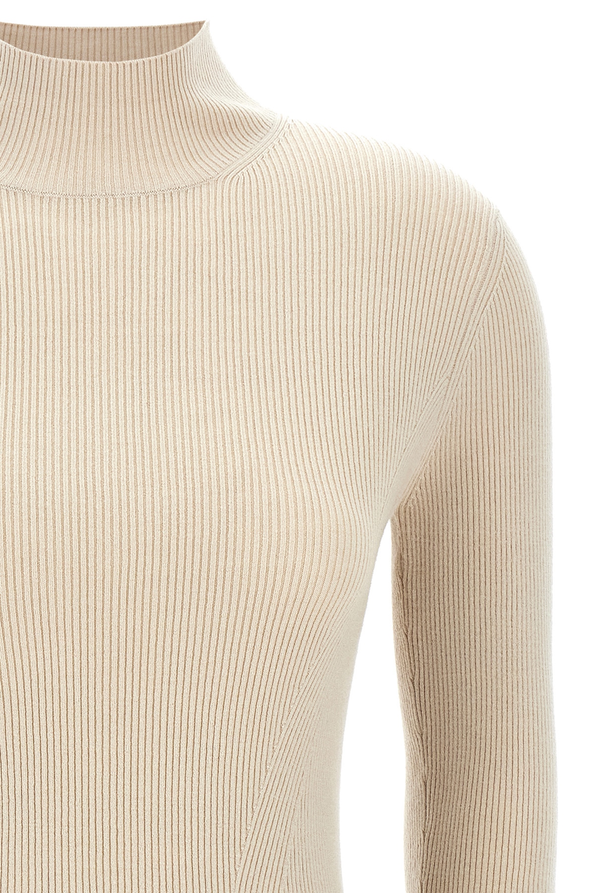 'Zanzara' ribbed wool blend sweater with high neck, long sleeves.
