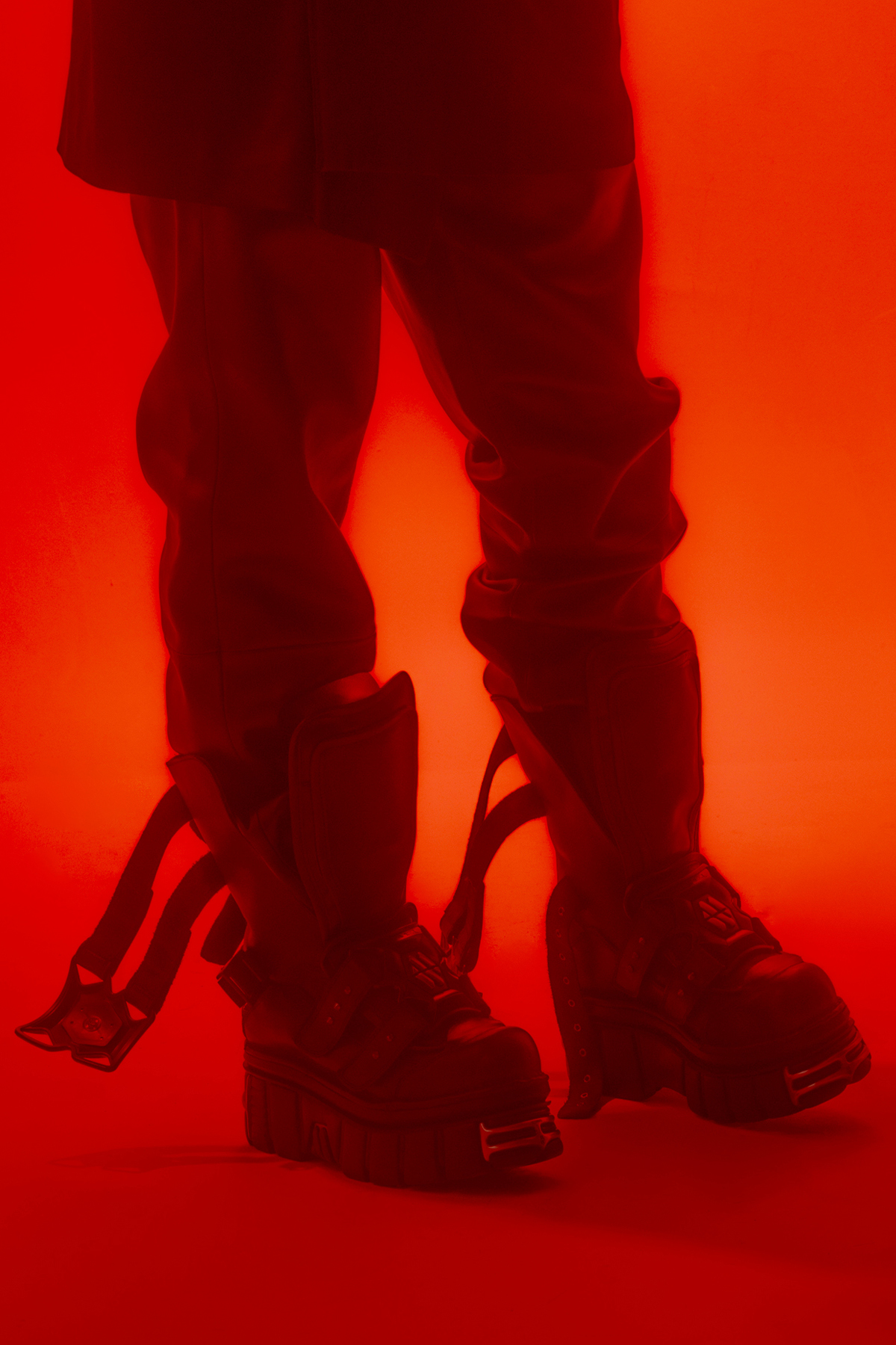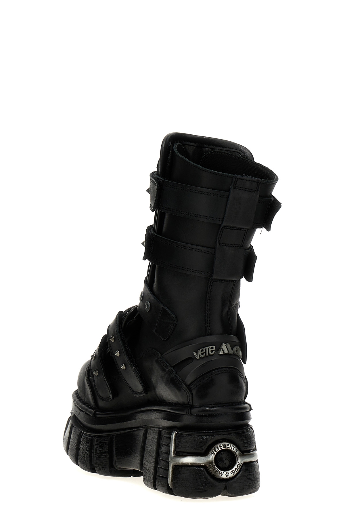 Vetements x New Rock leather 'Gamer' boots with stud application, Velcro strap closure, platform sole.