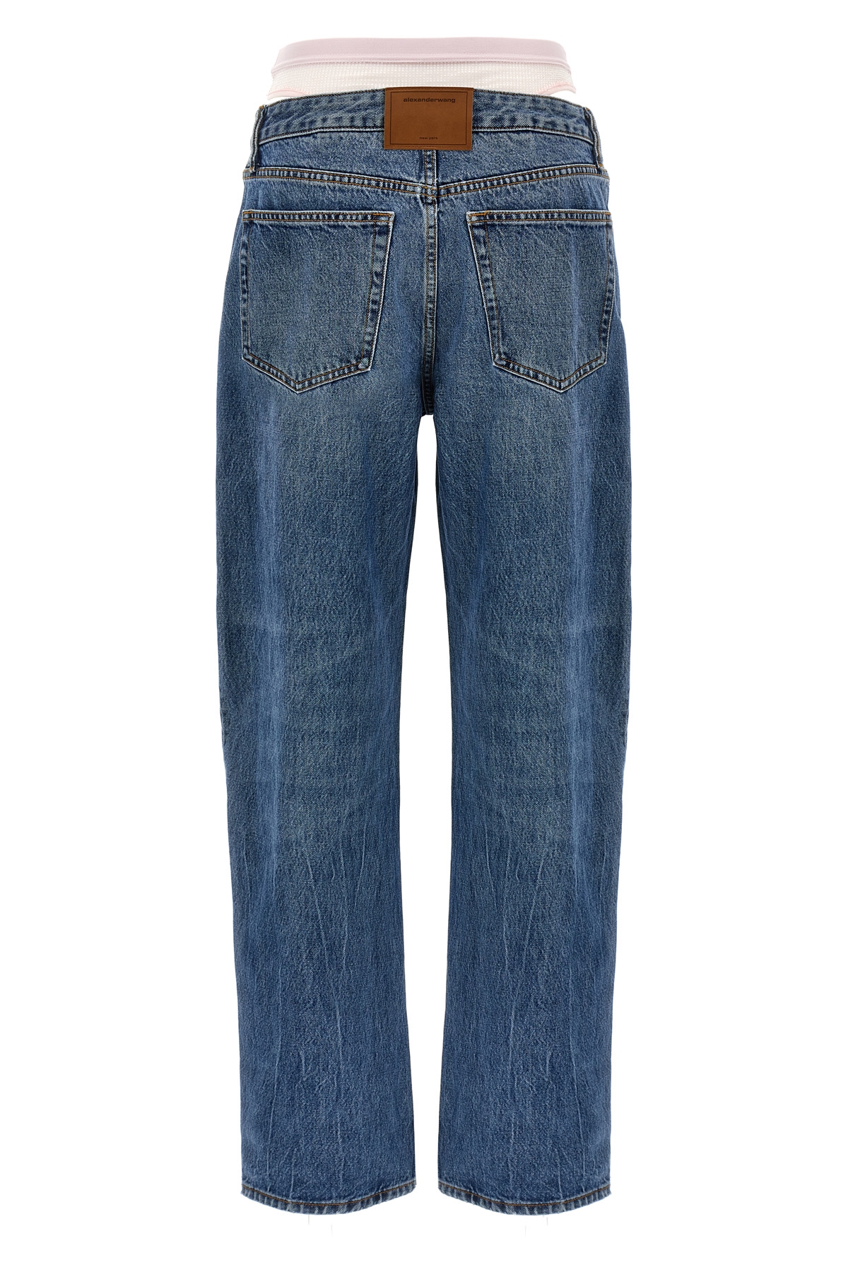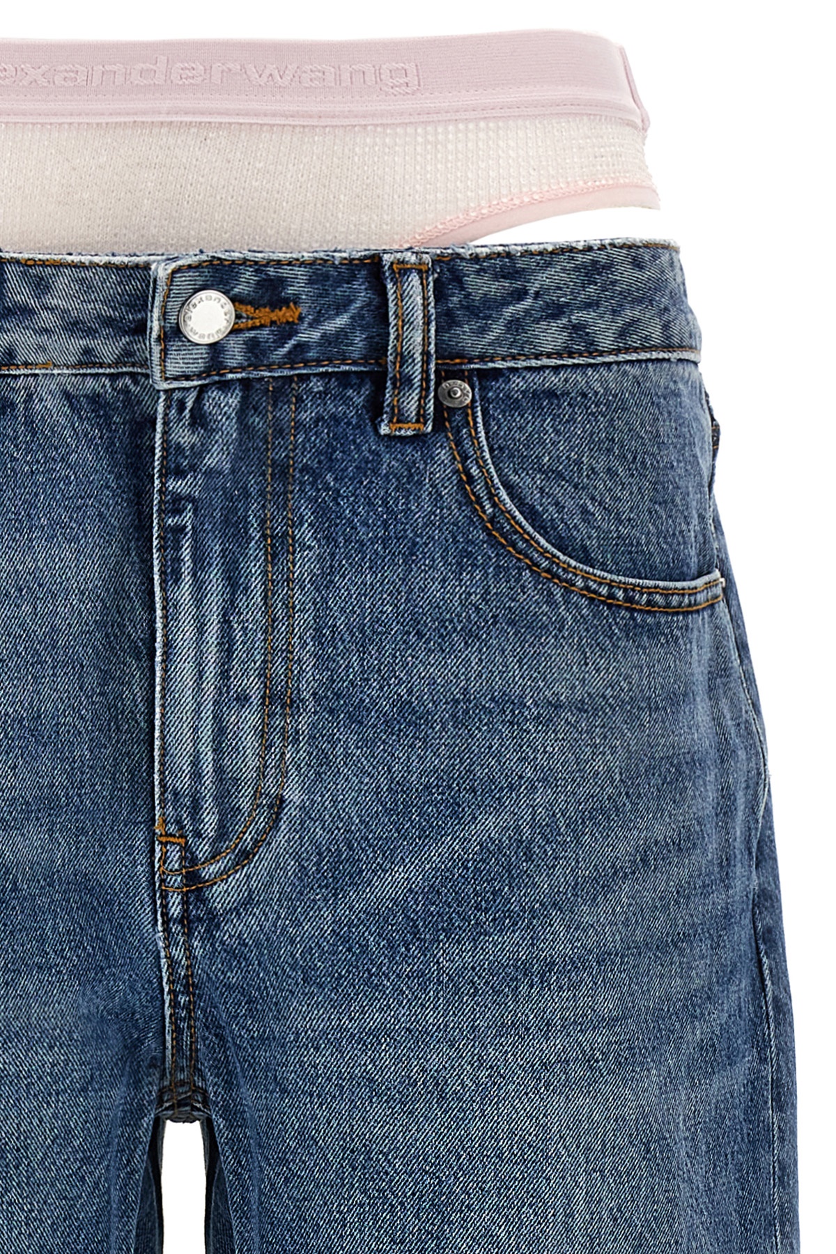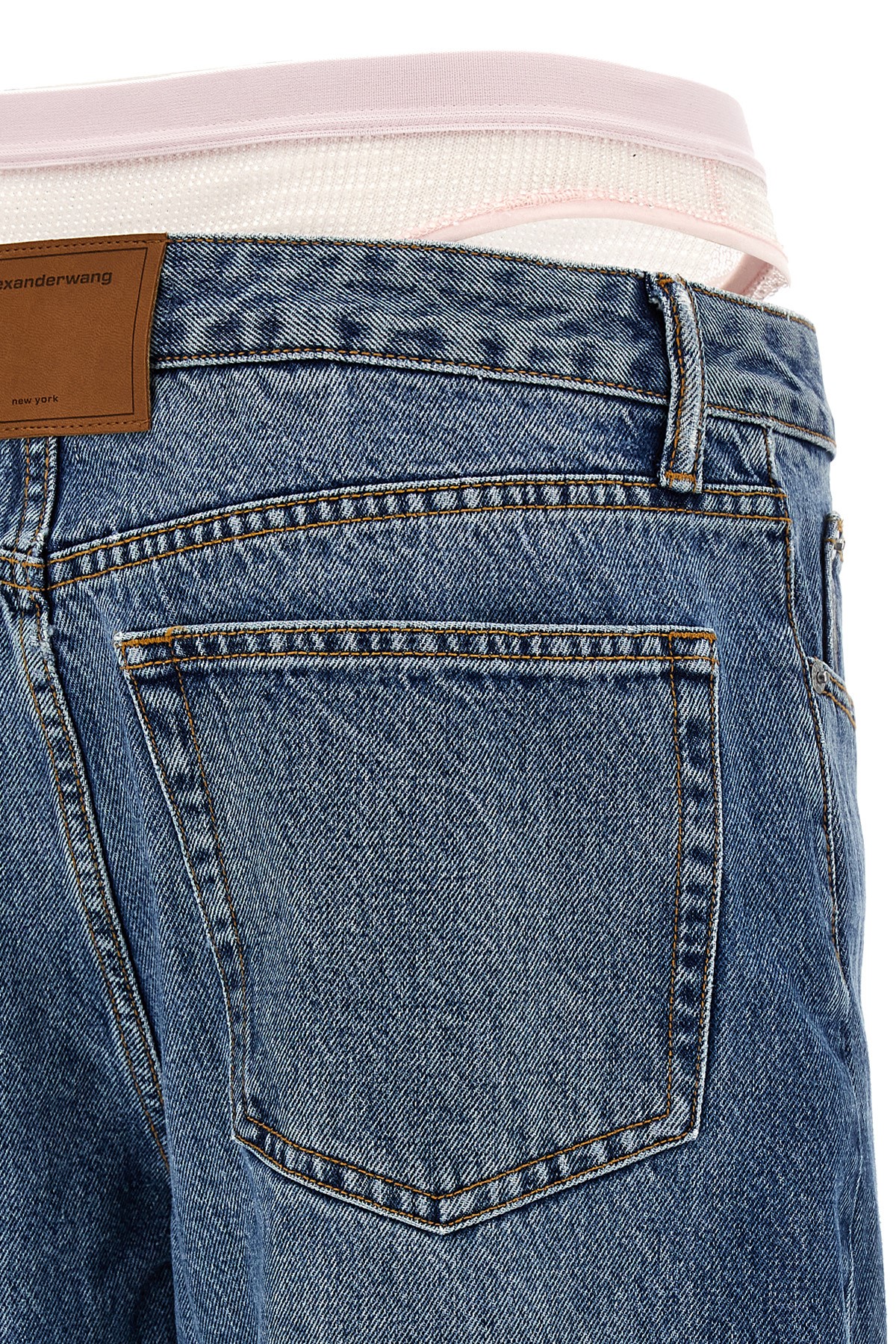 'Slit Hem Prestyle Hotfix Mesh Undie' cotton denim jeans, exposed briefs detail in mesh fabric with thermoapplied rhinestones, zip and button closure, five pockets, leather logo tag.
