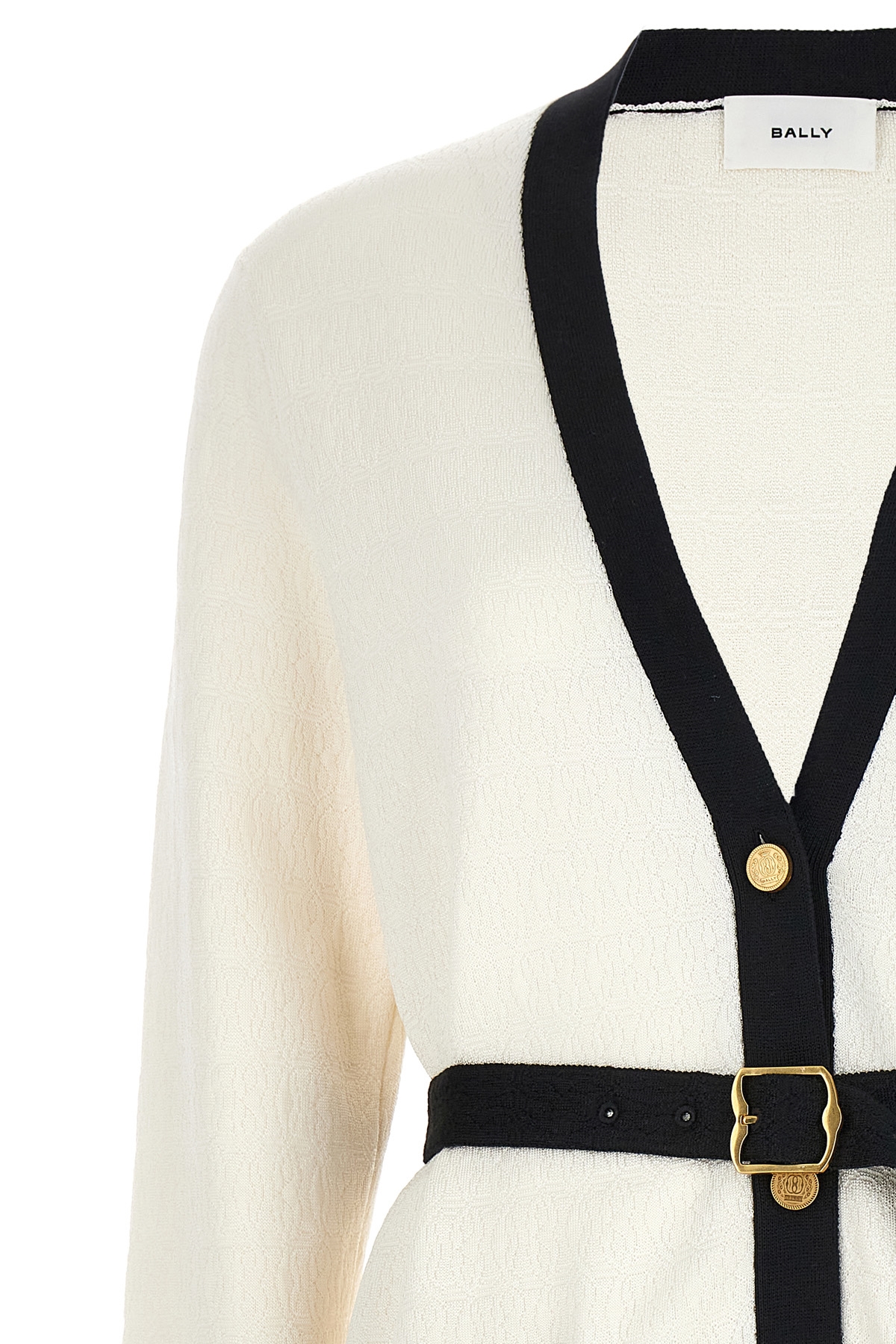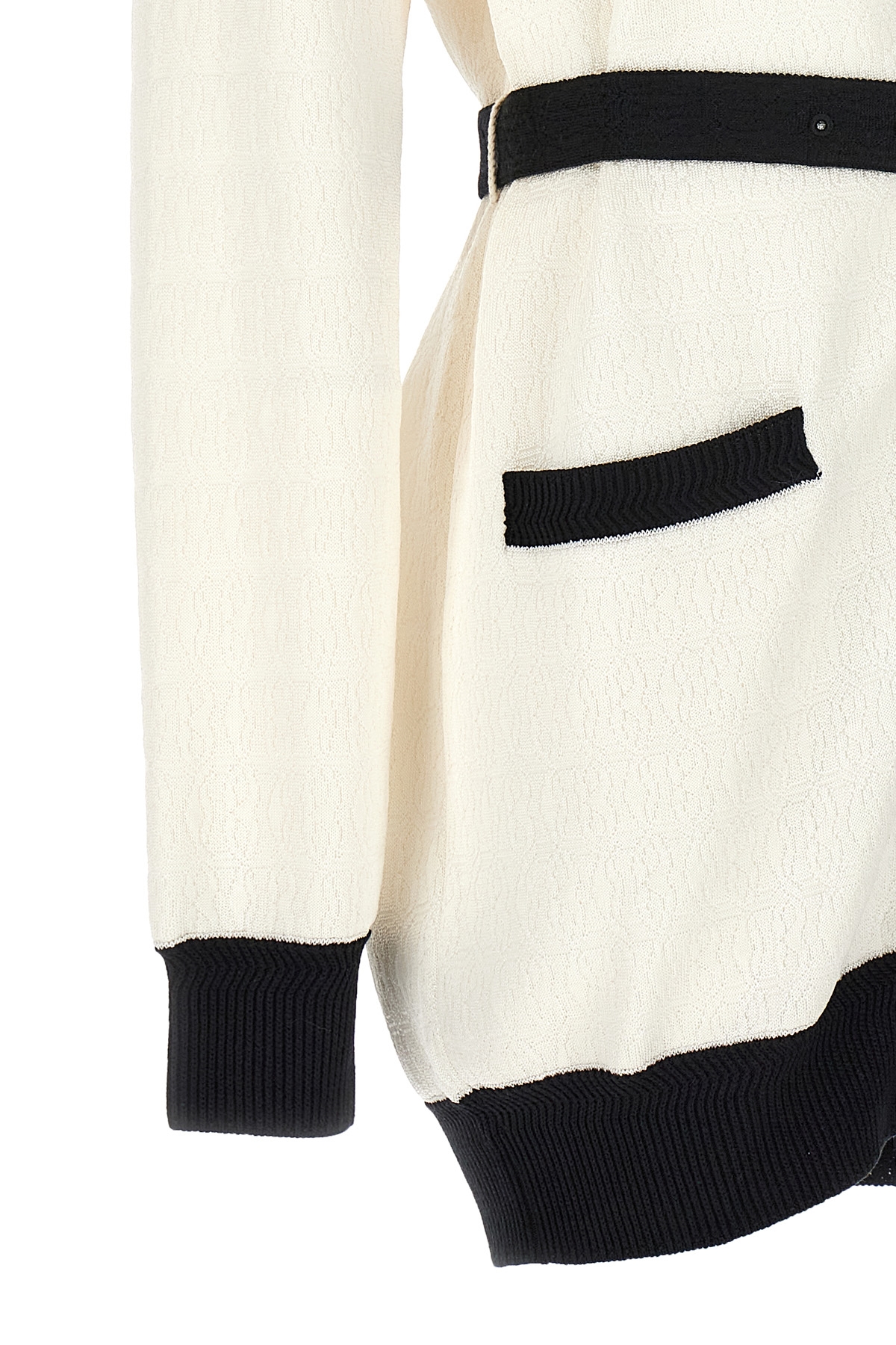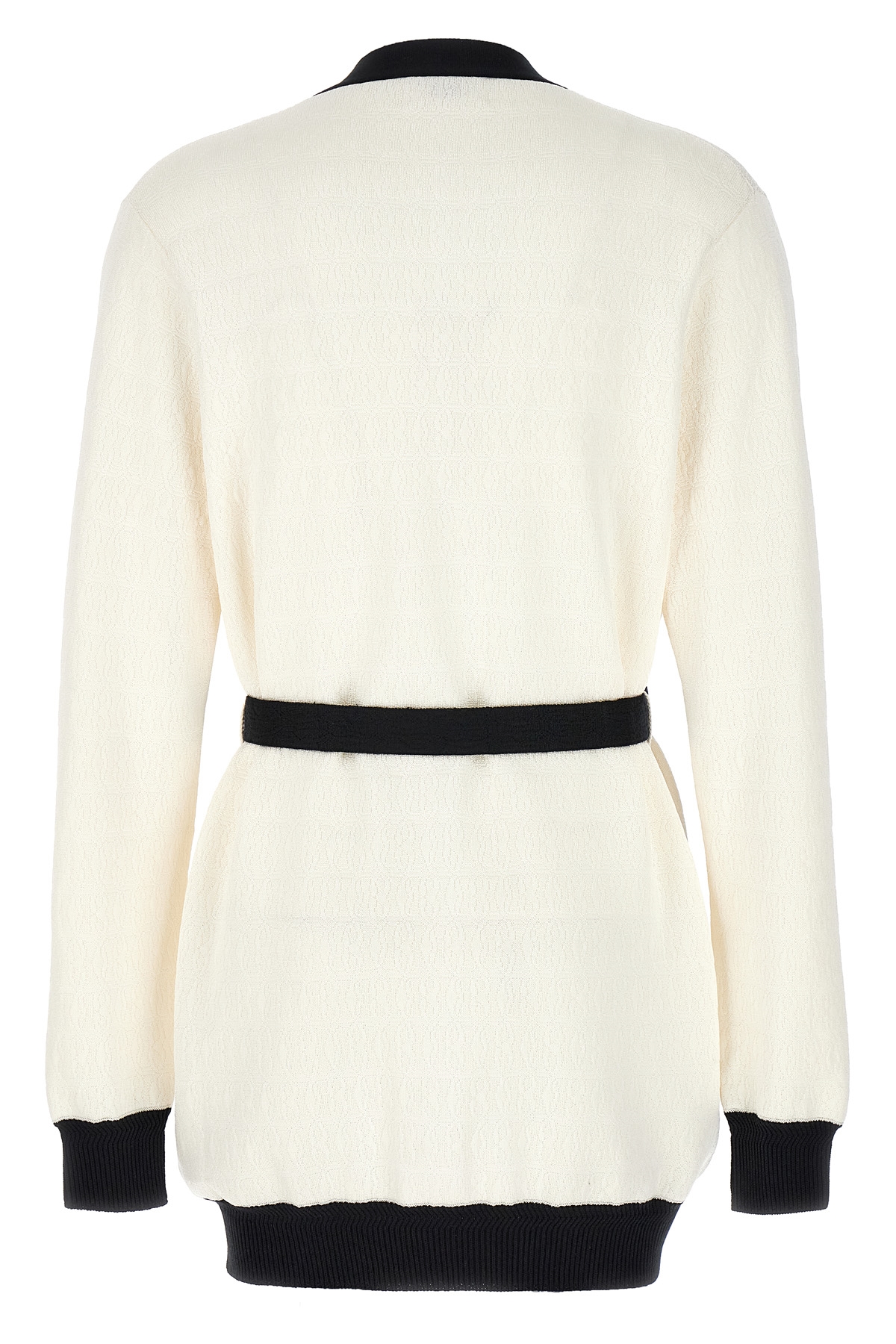 Viscose blend cardigan with all-over jacquard logo, button closure, long cuffed sleeves, pockets.