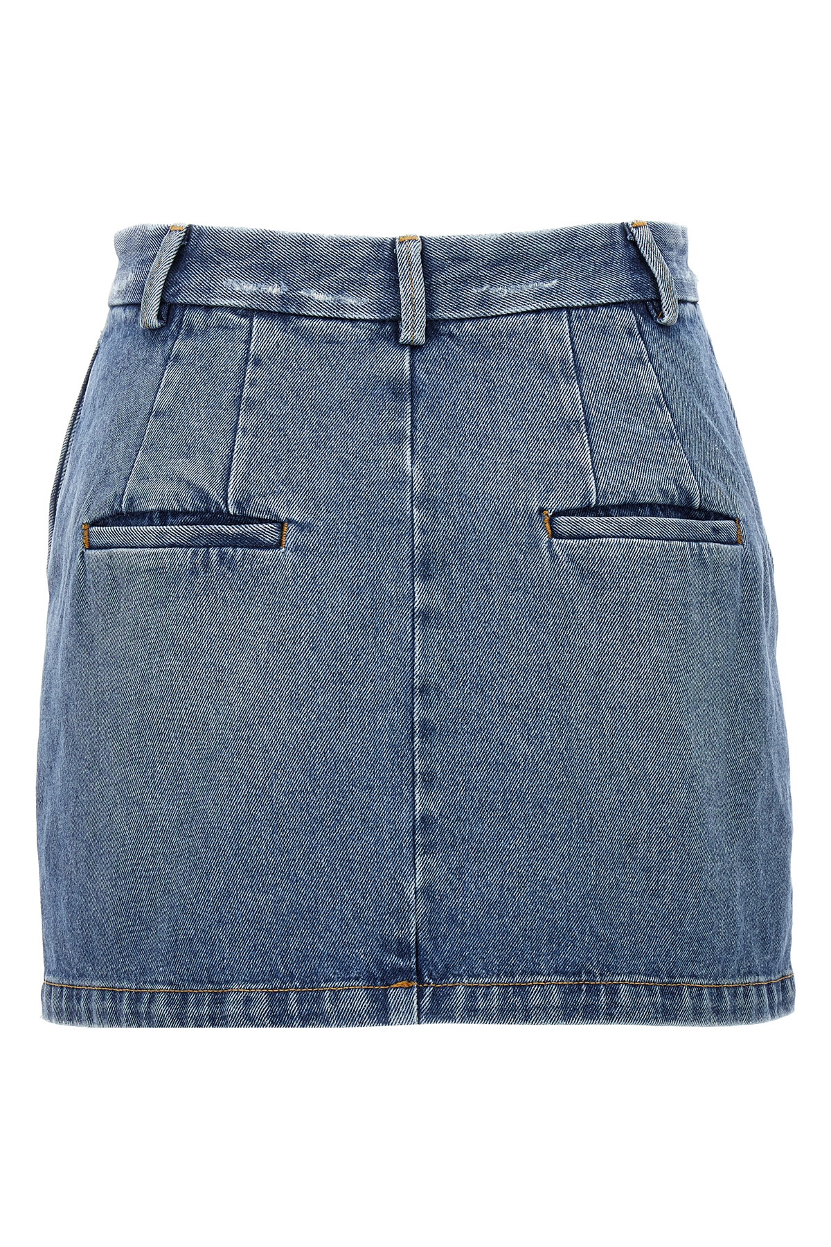 'Lula' denim miniskirt with zip and hook closure.