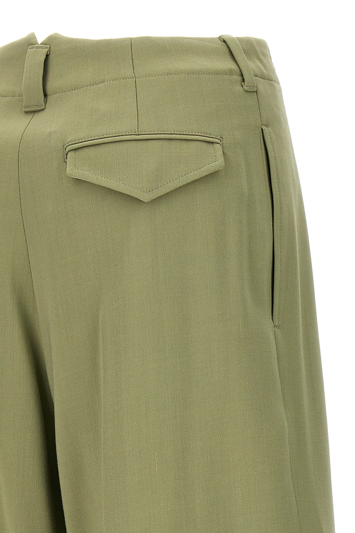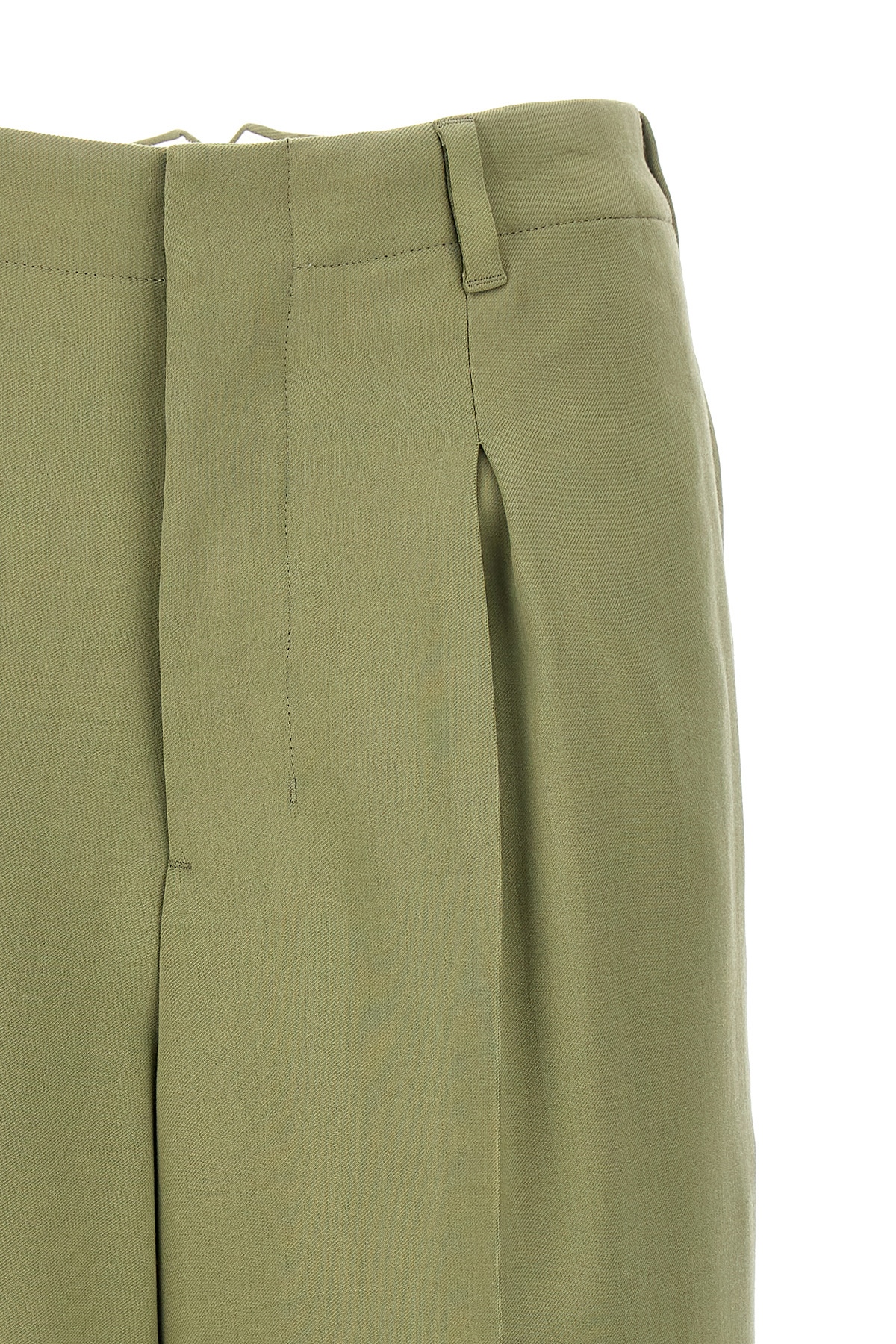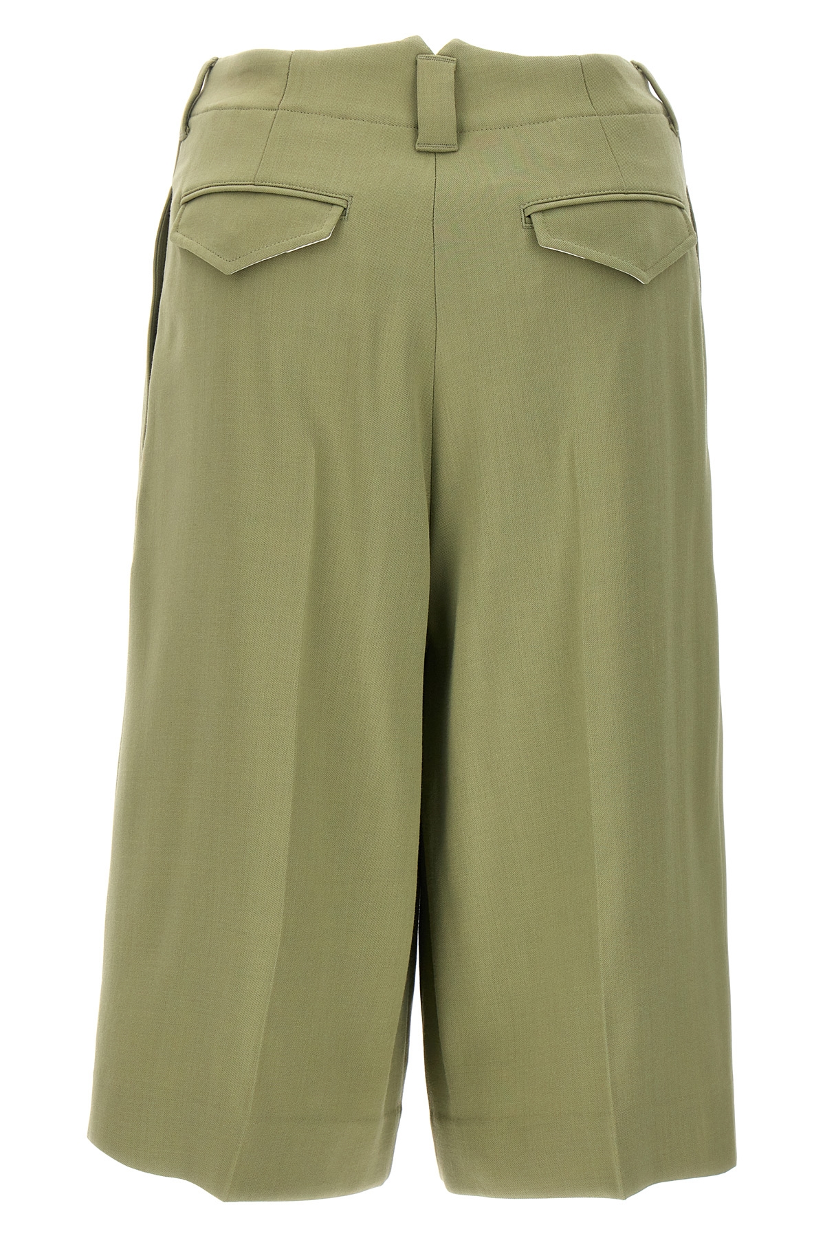 Bermuda shorts in viscose and wool blend, leg with pin tucks and crease, button closure, pockets.