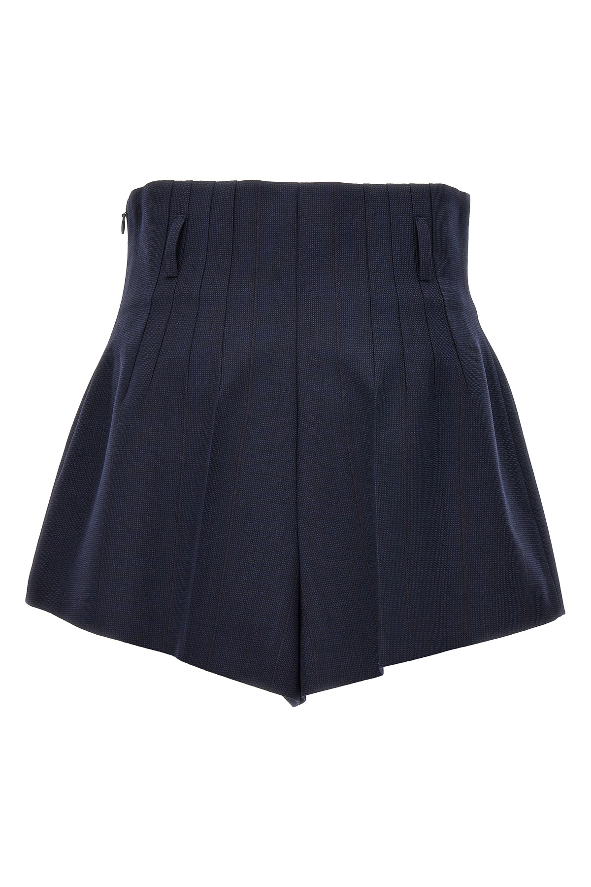 Pinstripe wool shorts, high waist with belt loops, side hook and zip closure.
