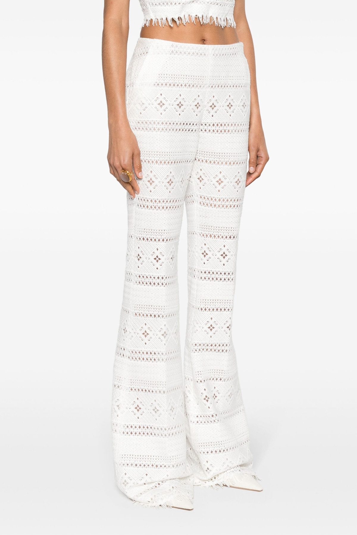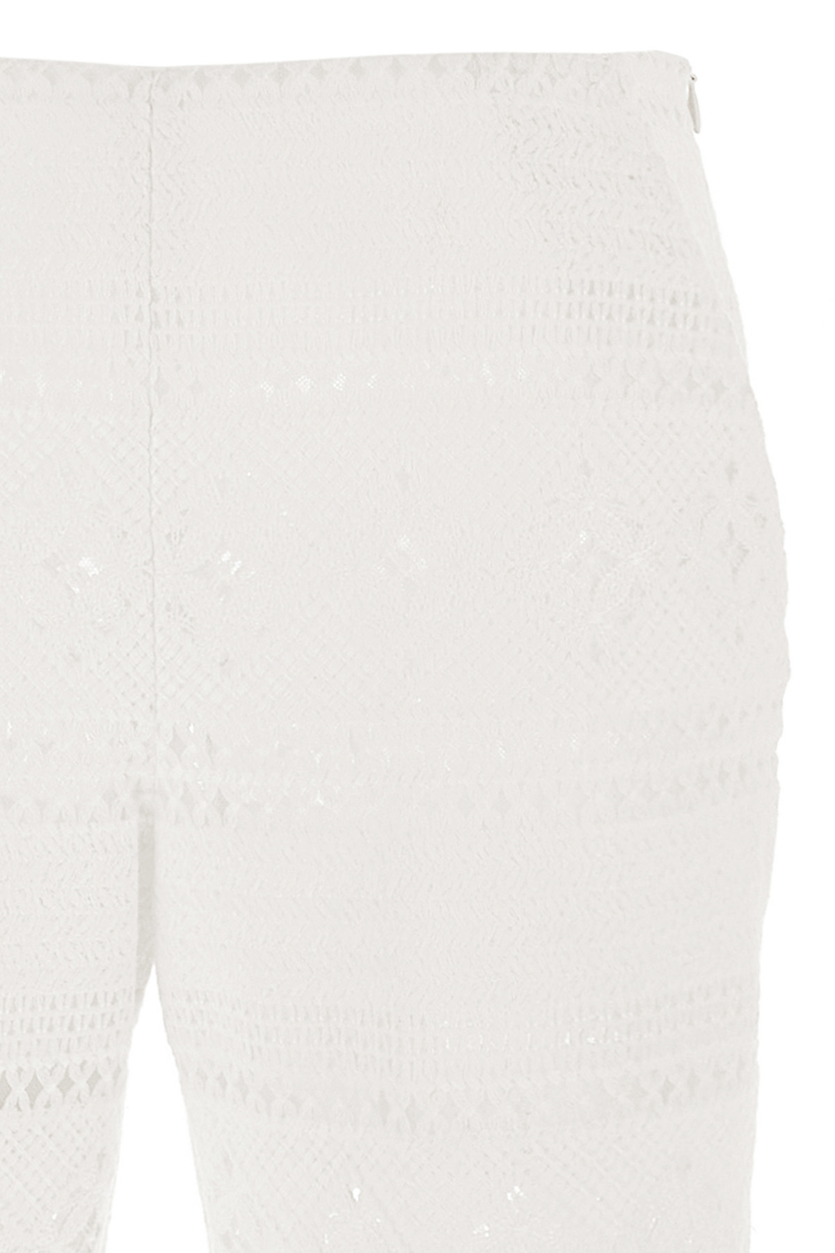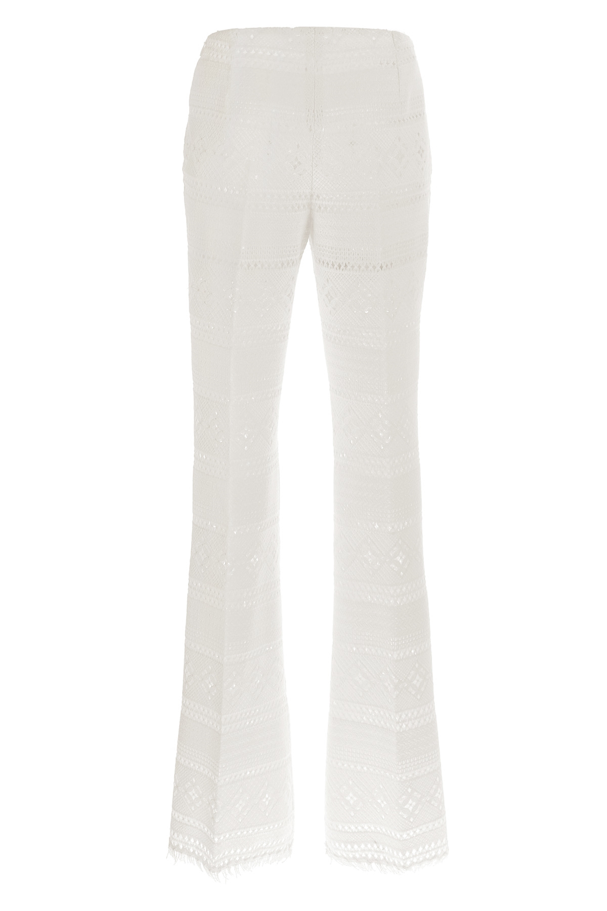 Lace trousers, flared leg with stretched pleat, side zip closure, pockets.