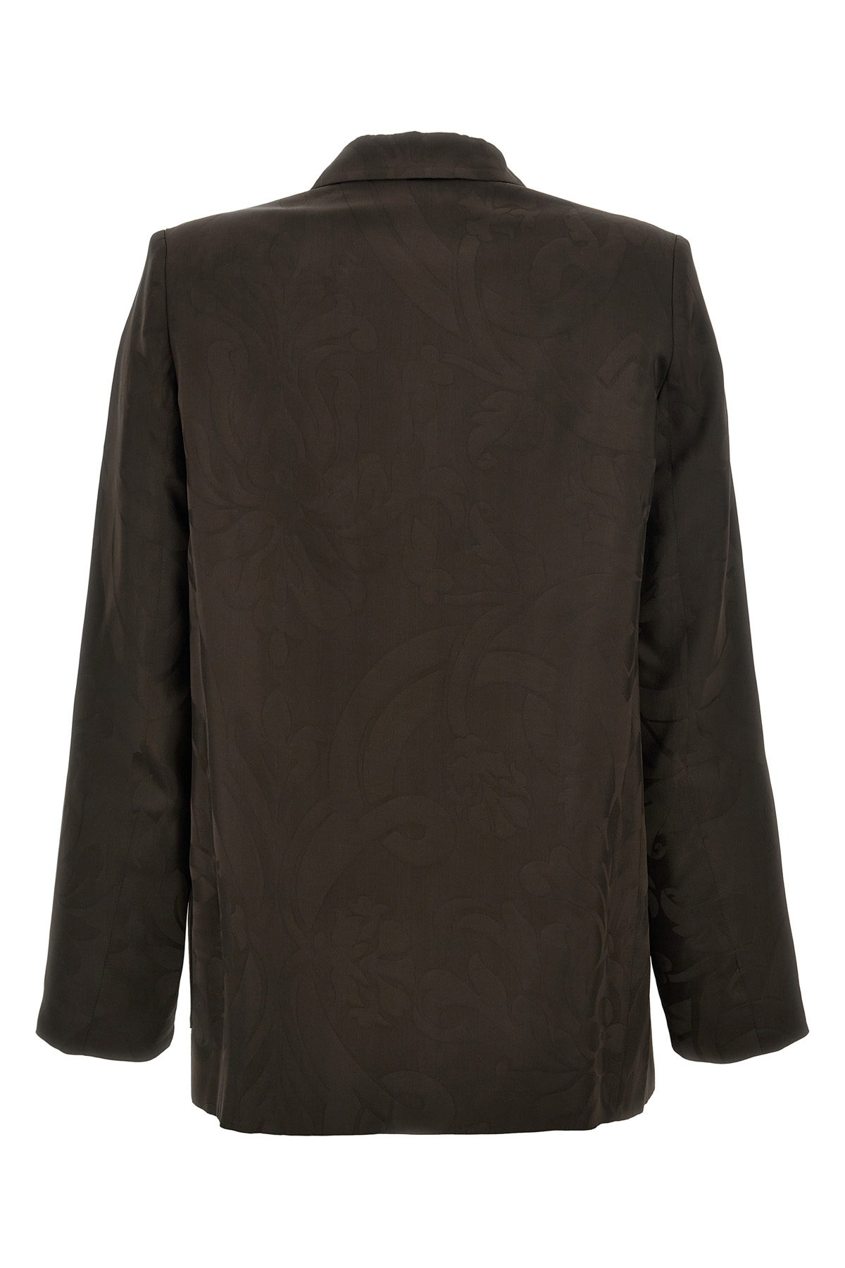 'Mereope' double-breasted viscose jacquard blazer with button closure, pockets, long sleeves, padded shoulders.