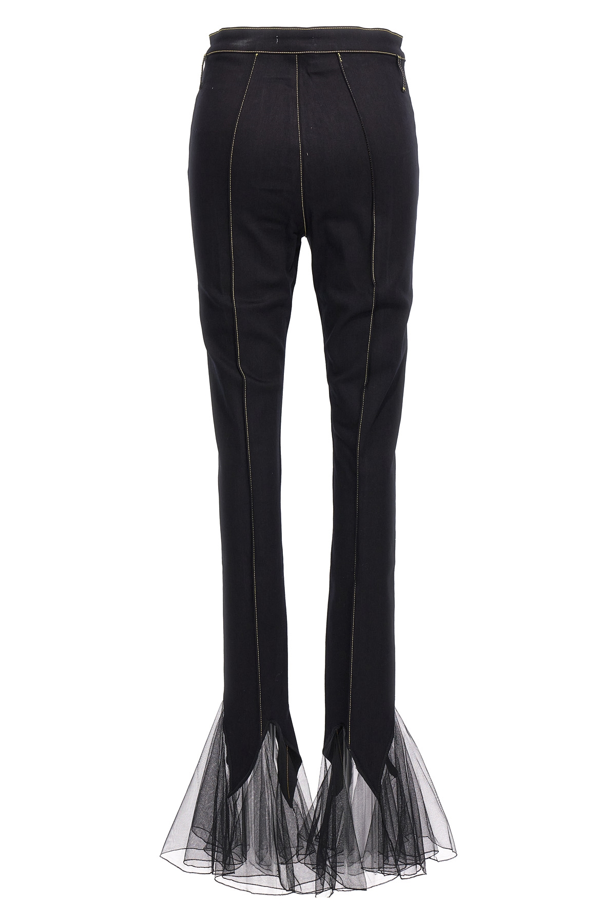 'Tulle' jeans, slim fit, high waist, contrast stitching, tulle ruffle detail on the leg bottoms, front zip and button closure.