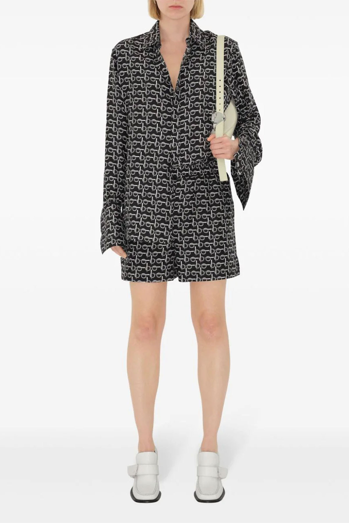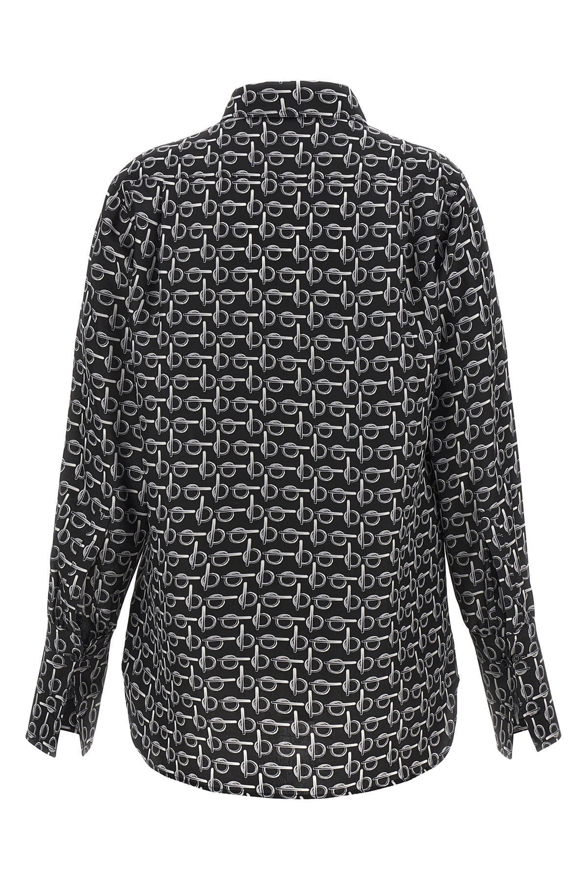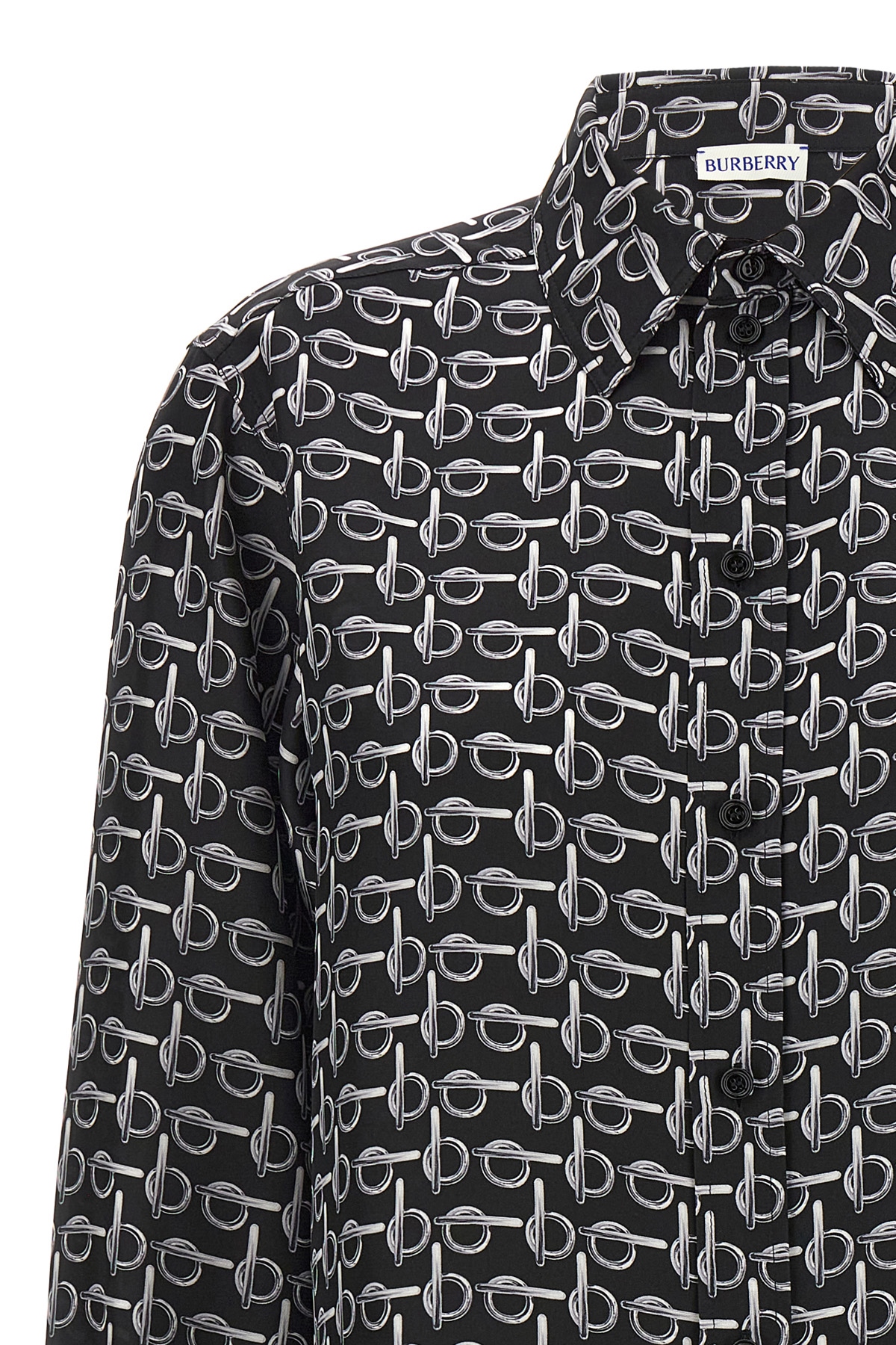 Silk shirt with all-over 'B' print, button closure, long cuffed sleeves.