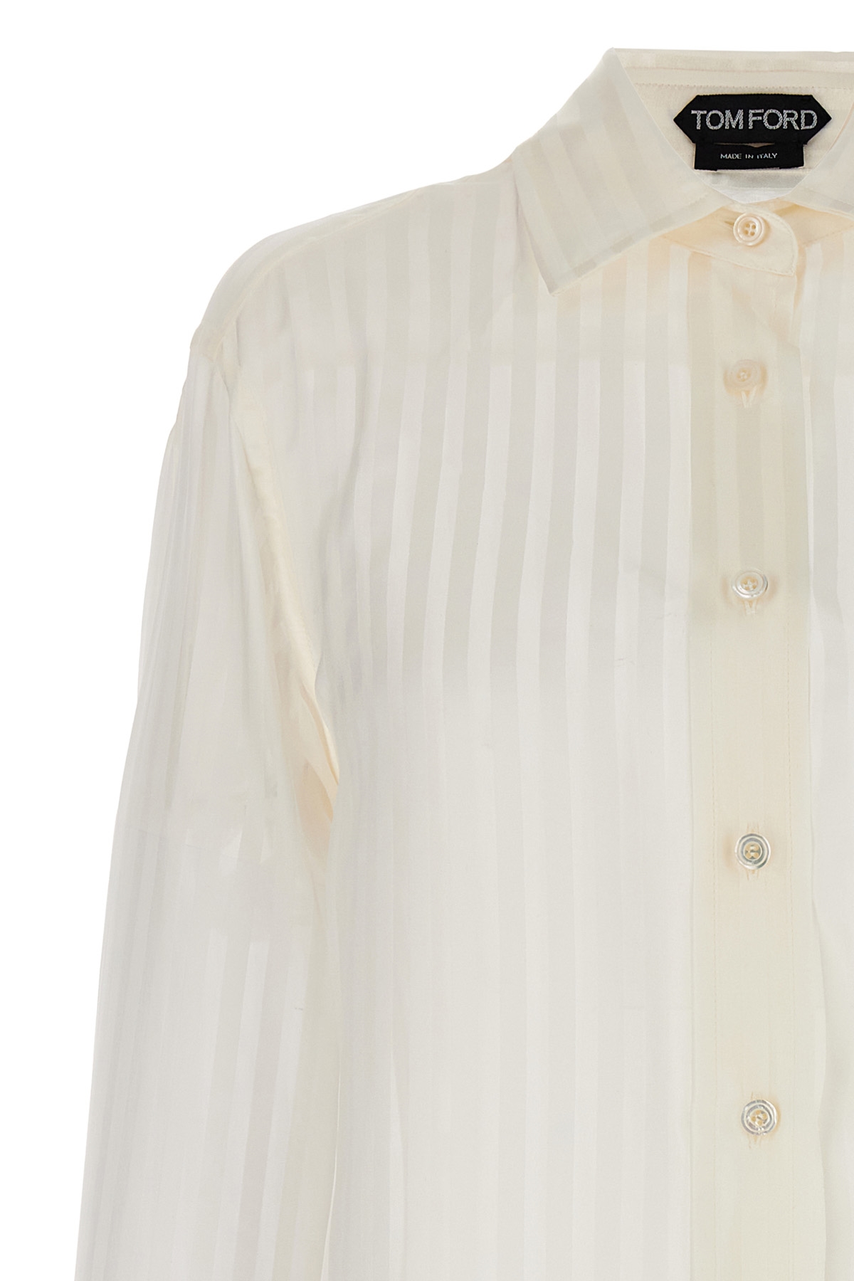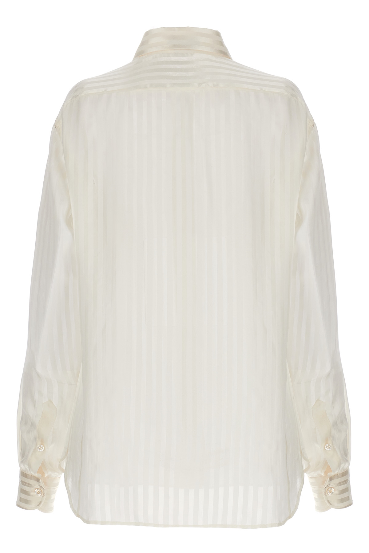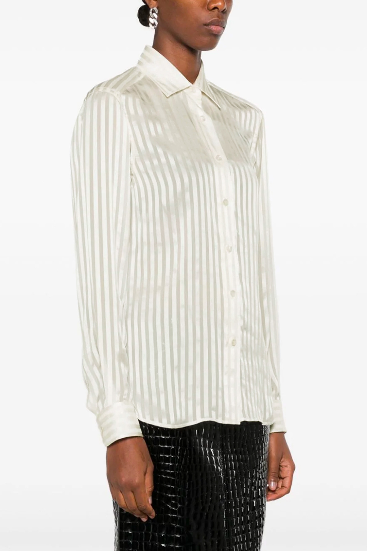Tone-on-tone striped silk shirt with button closure.
