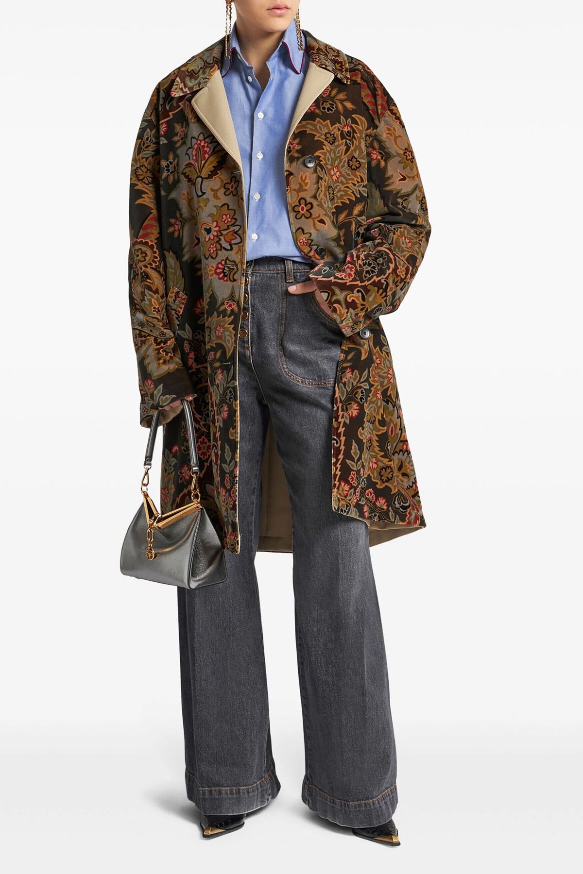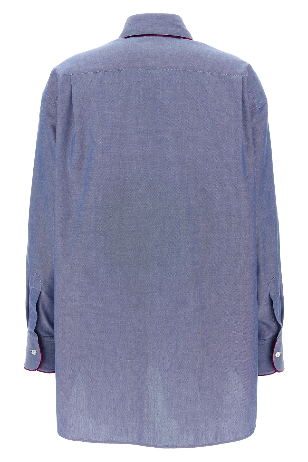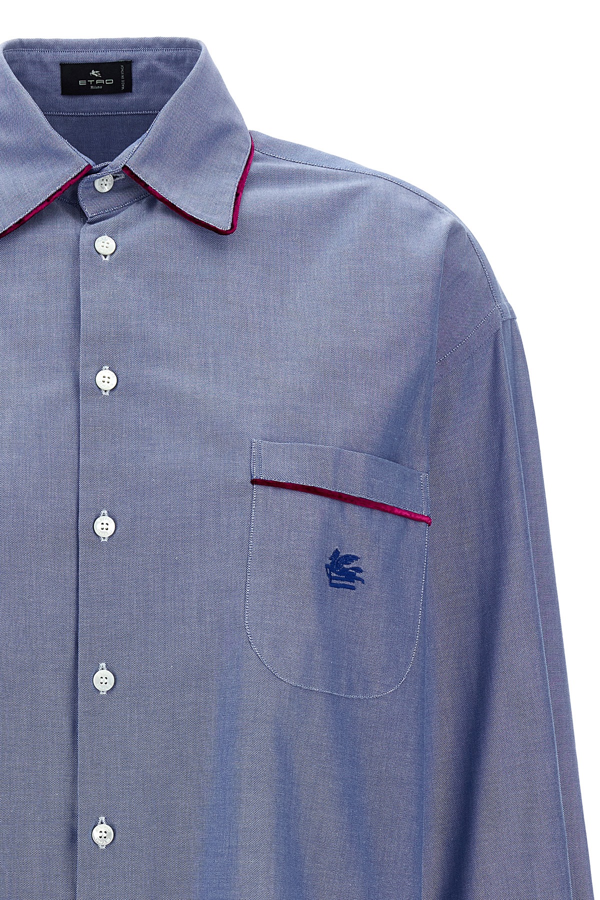 Oxford cotton shirt with contrast velvet piping, front pocket with logo embroidery, button closure, long cuffed sleeves.