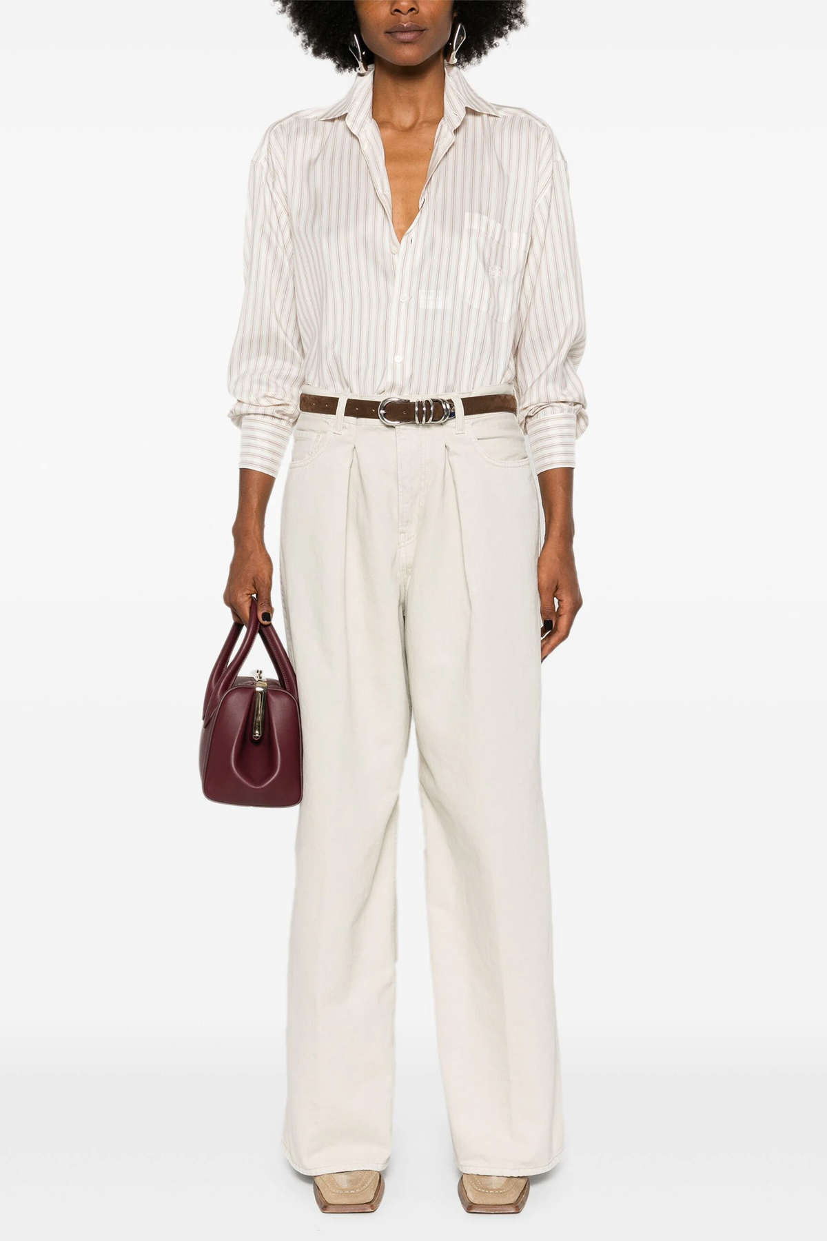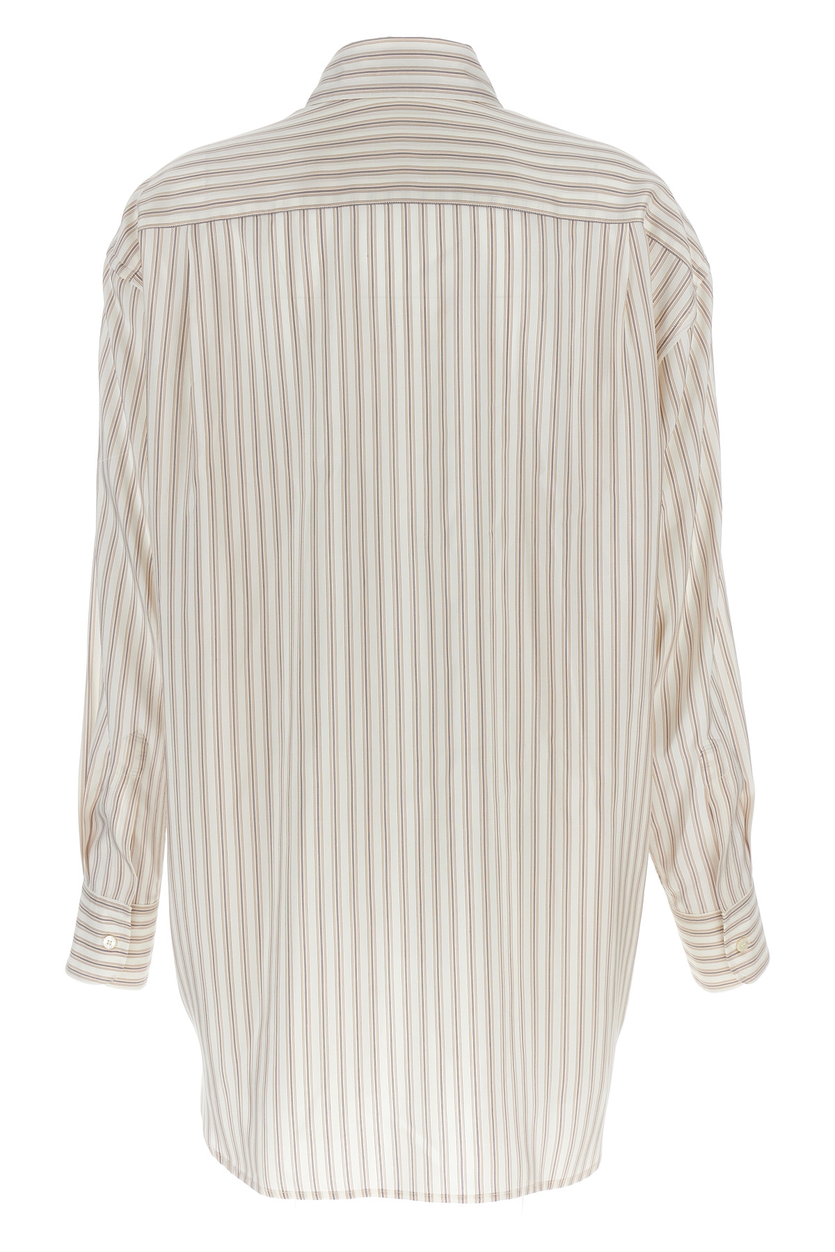 Striped silk shirt, front pocket with logo embroidery, button closure, long cuffed sleeves.