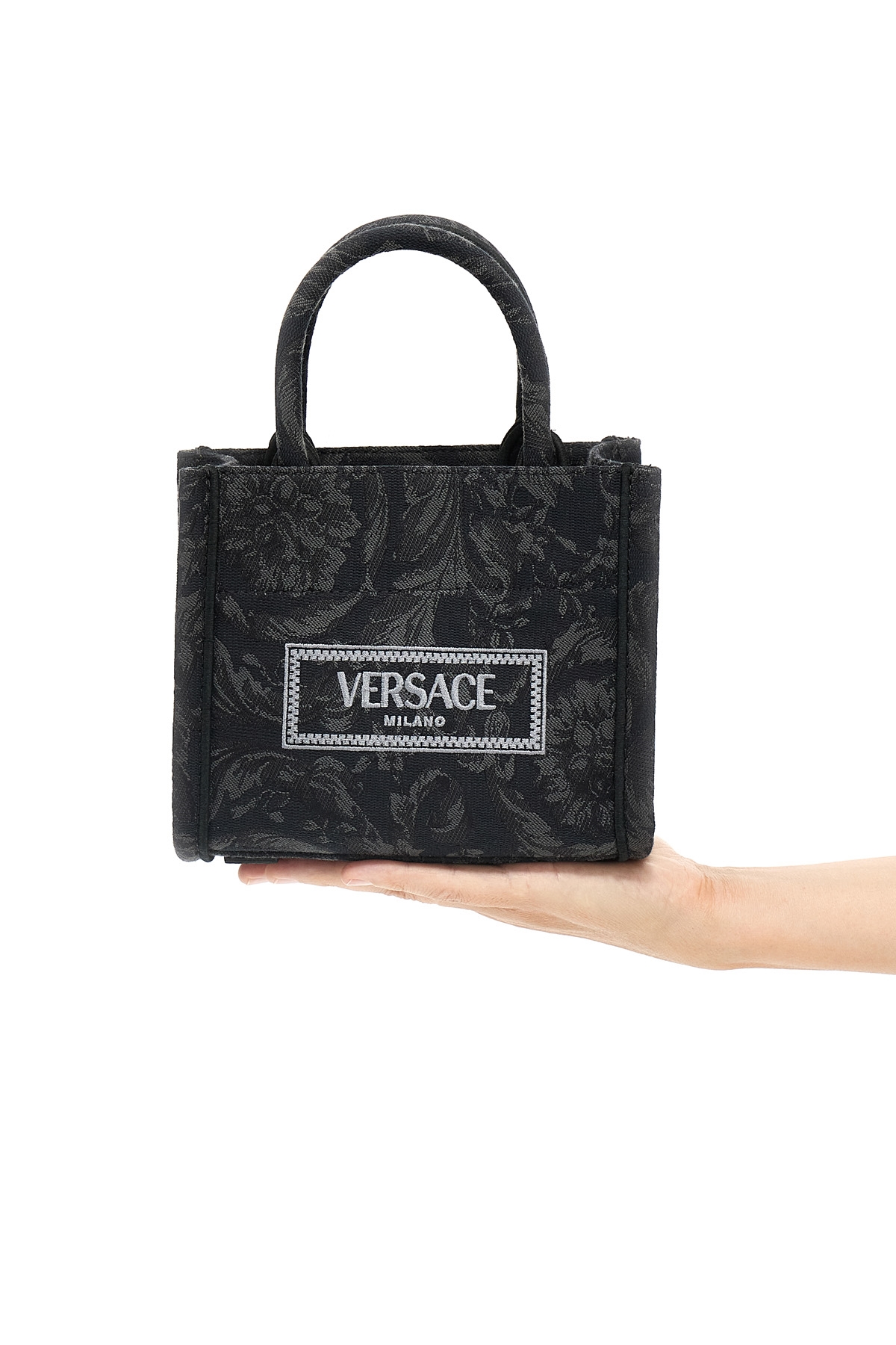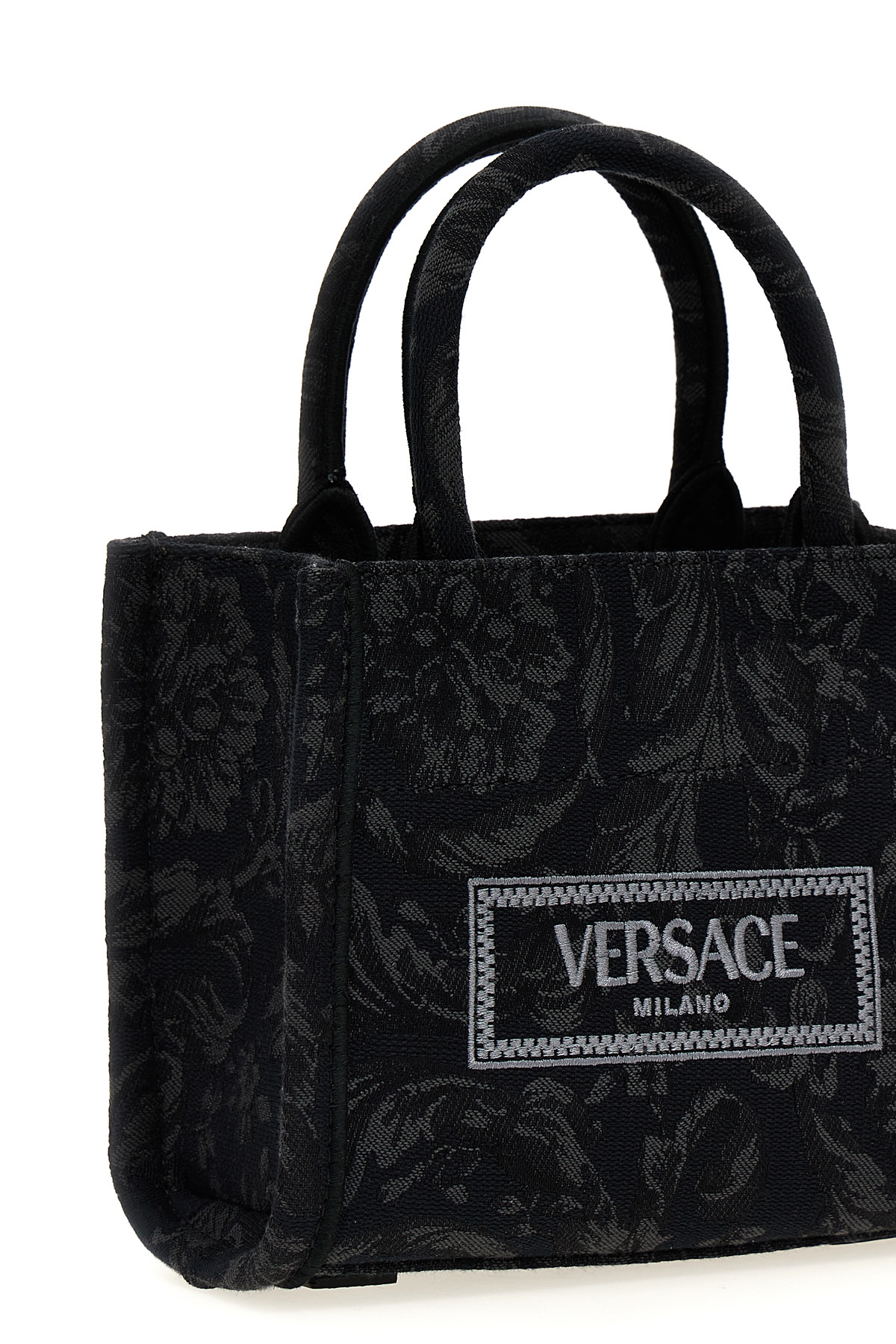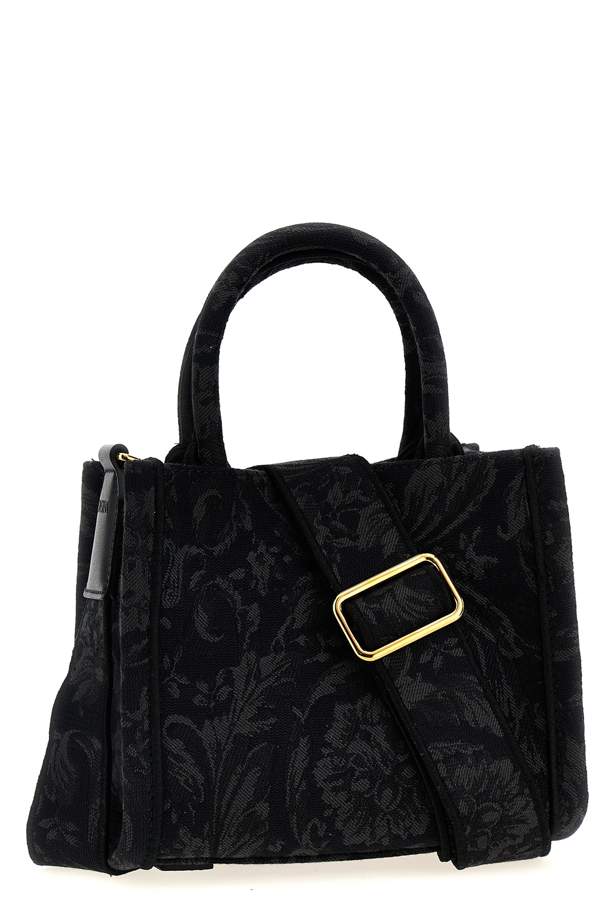 'Extra Small Athena' shopping bag in Barocco jacquard fabric with front logo embroidery, double handle, adjustable and removable shoulder strap.
