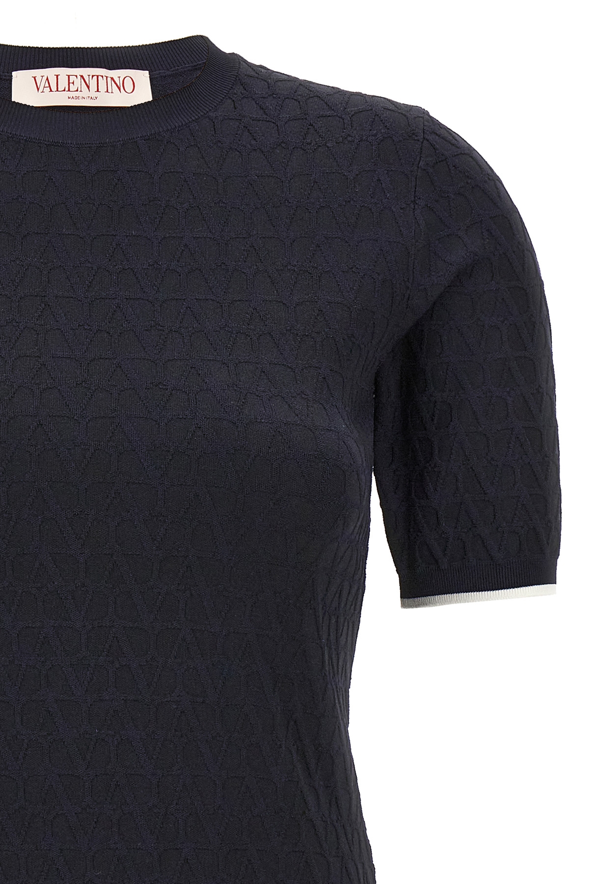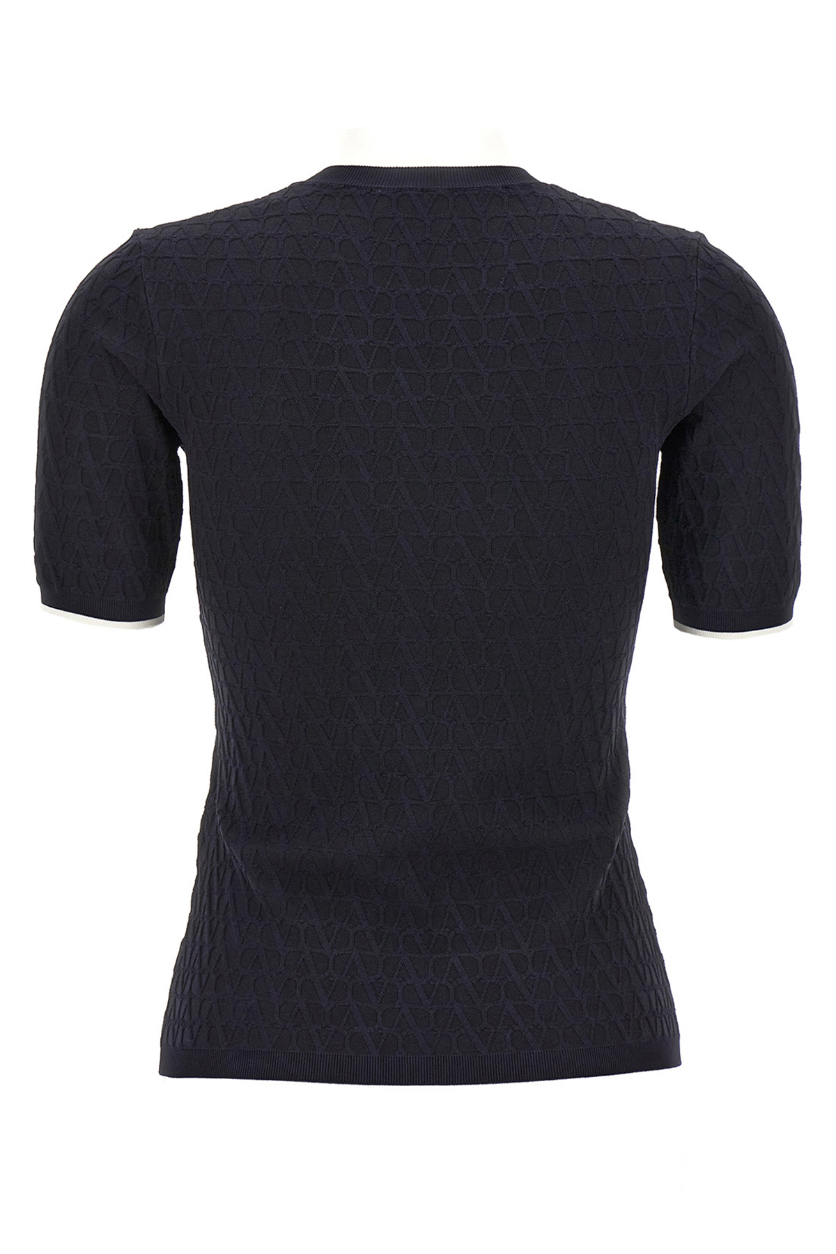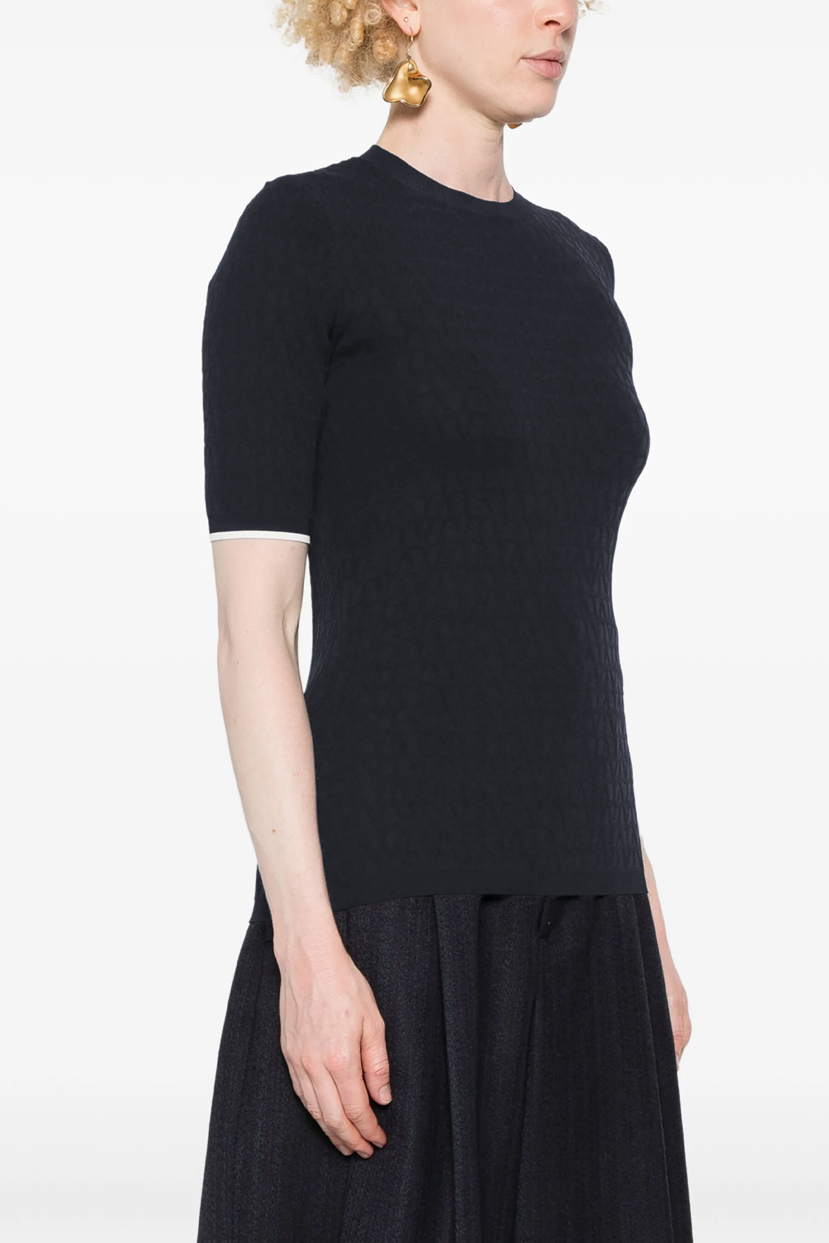 'Toile Iconographe' stretch fabric sweater with crew neck and short sleeves.
