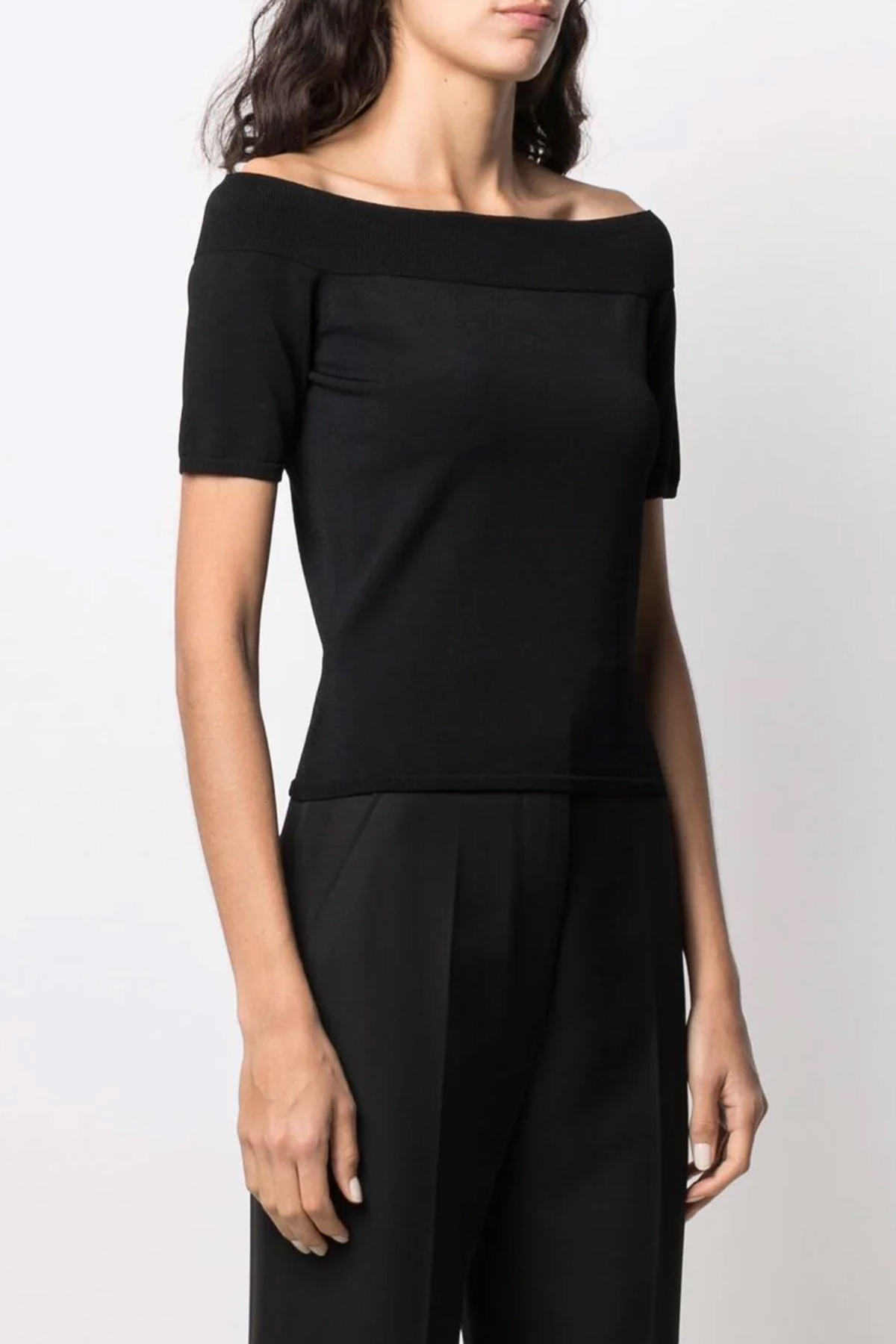 Off-the-shoulder top in a viscose blend with short sleeves and a squared neckline.