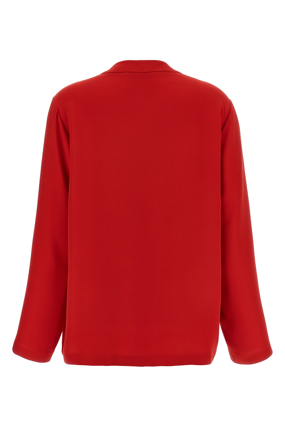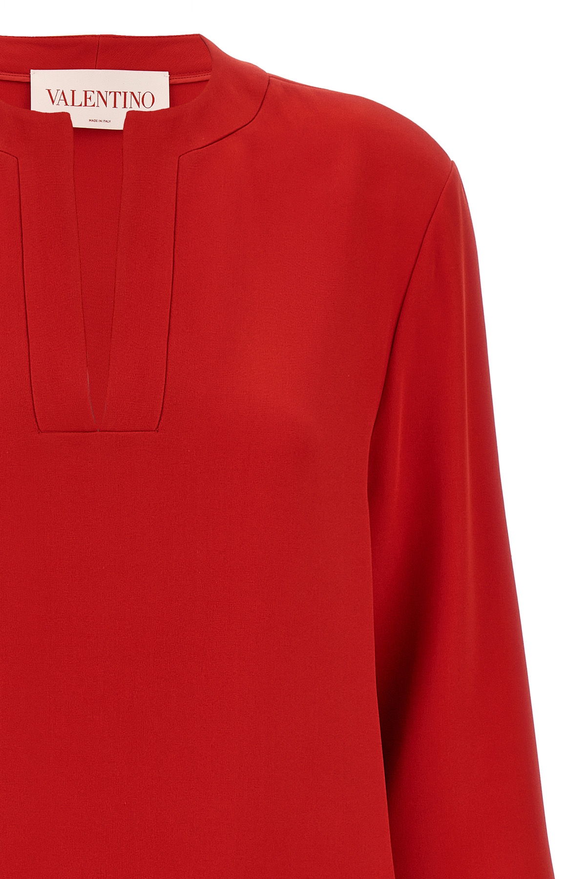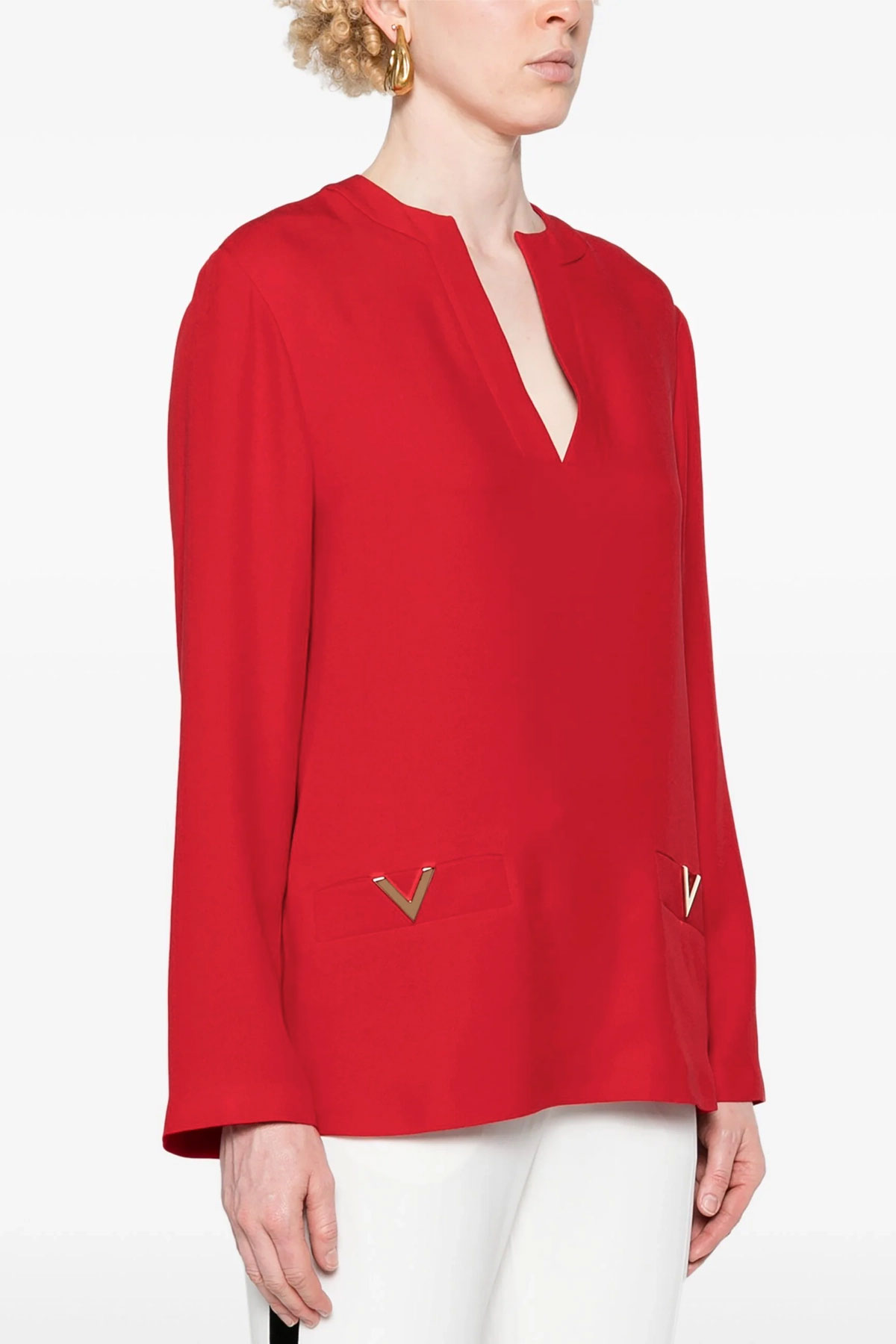 Silk cady blouse, V-neck, pockets with metal 'V Gold' detail, long sleeves.