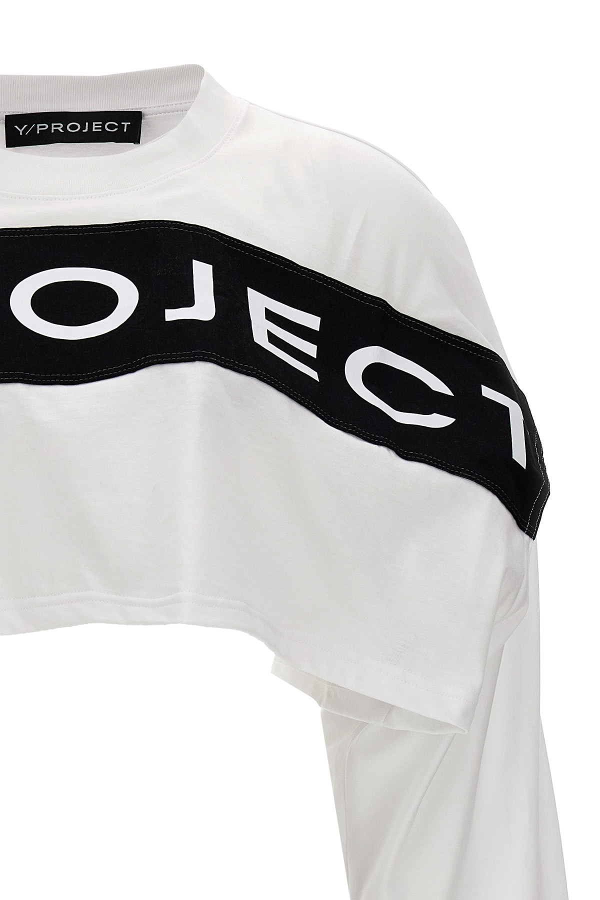Cropped cotton T-shirt with front logo print patch, crew neck, long sleeves.
