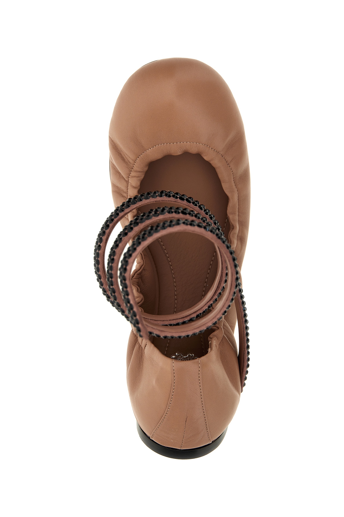 'Cleo' leather ballet flats with snake detail around the ankle and covered with rhinestones and leather sole.