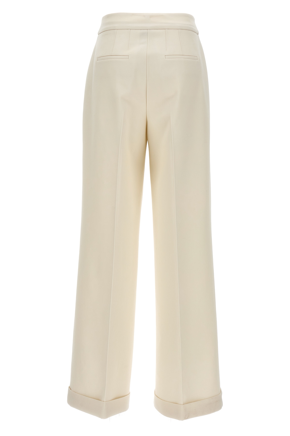 Stretch wool jersey trousers, zip and button closure, pockets, wide leg with turned-up hem.
