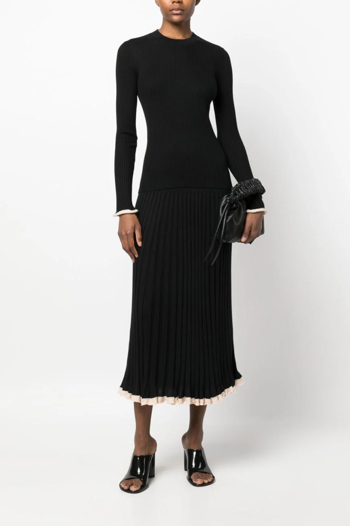 Ribbed silk blend skirt with elastic waistband, and contrasting hem.