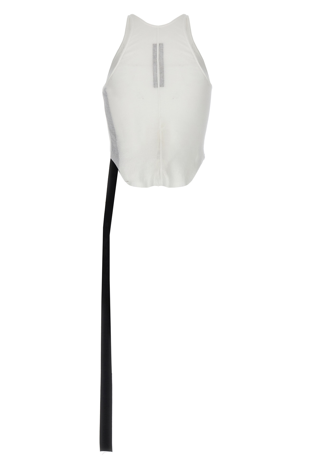 'Basic Tank Cropped' cotton top with round neckline, raw cut hem.