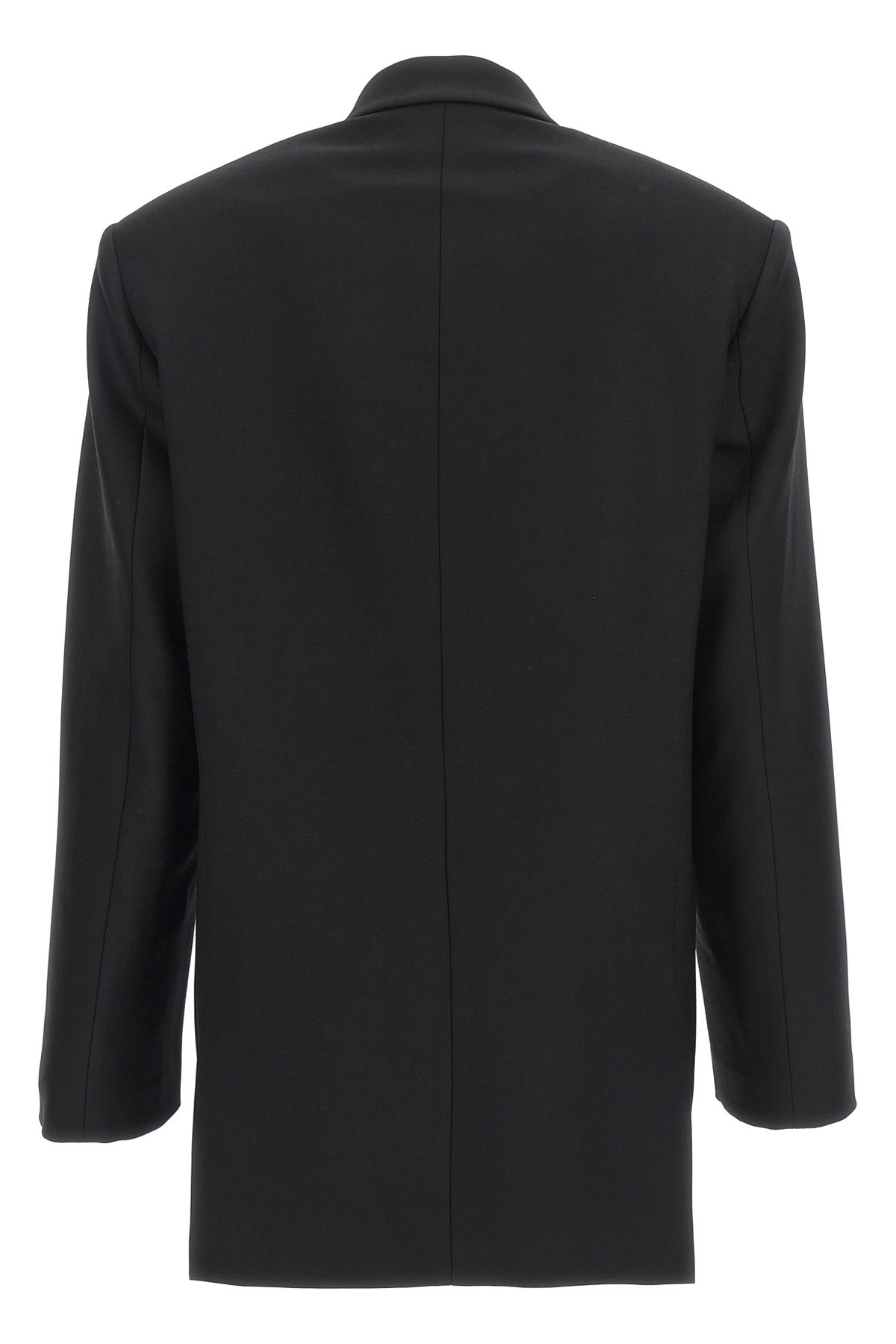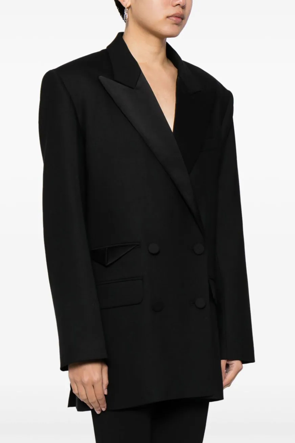'Tailored Tuxedo' double-breasted stretch wool blazer with button closure, pockets, long sleeves, back vents.