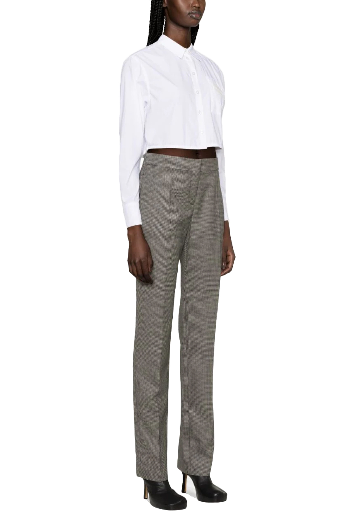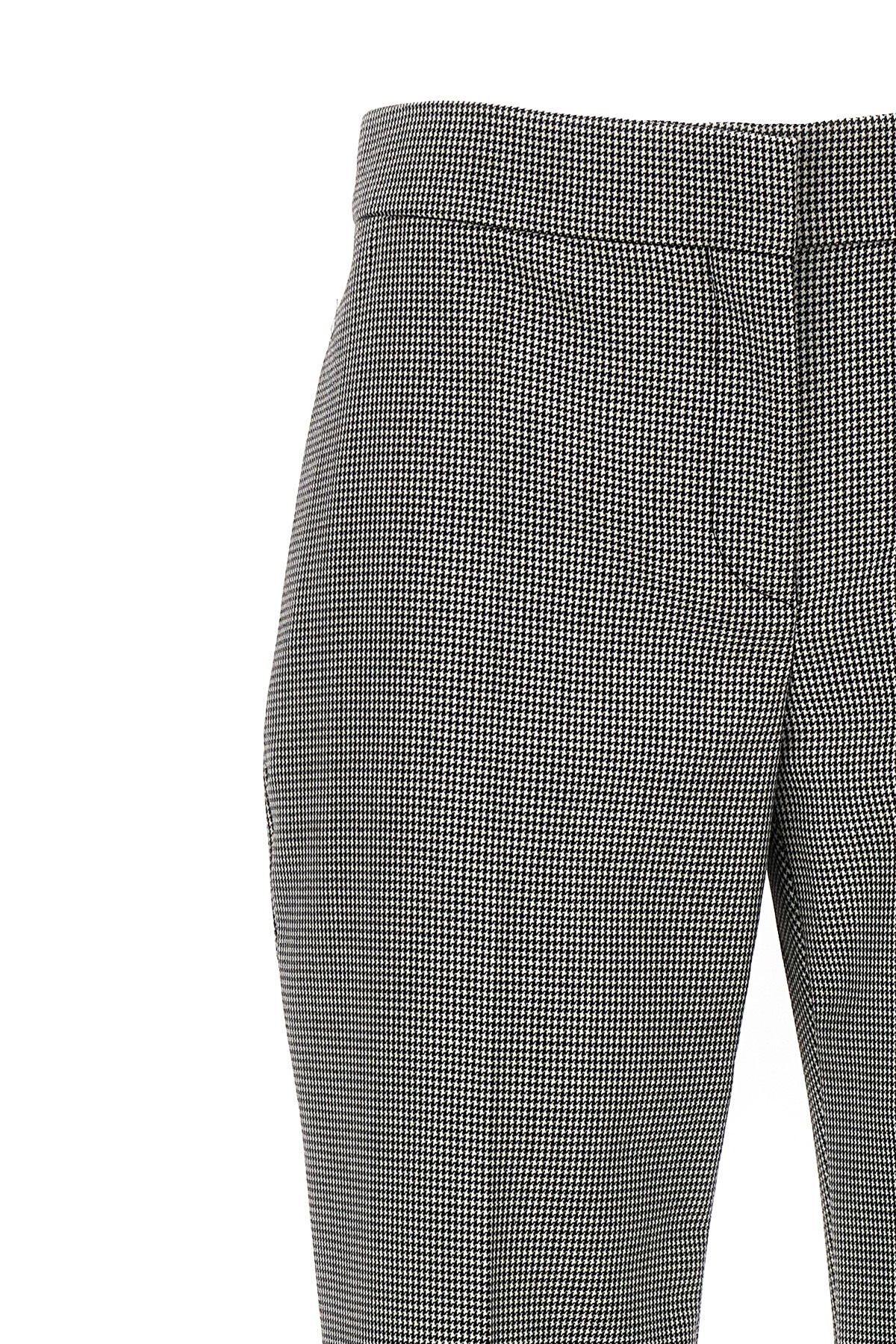 Cigarette-style wool pants, low waist houndstooth model, zip and hook closure.