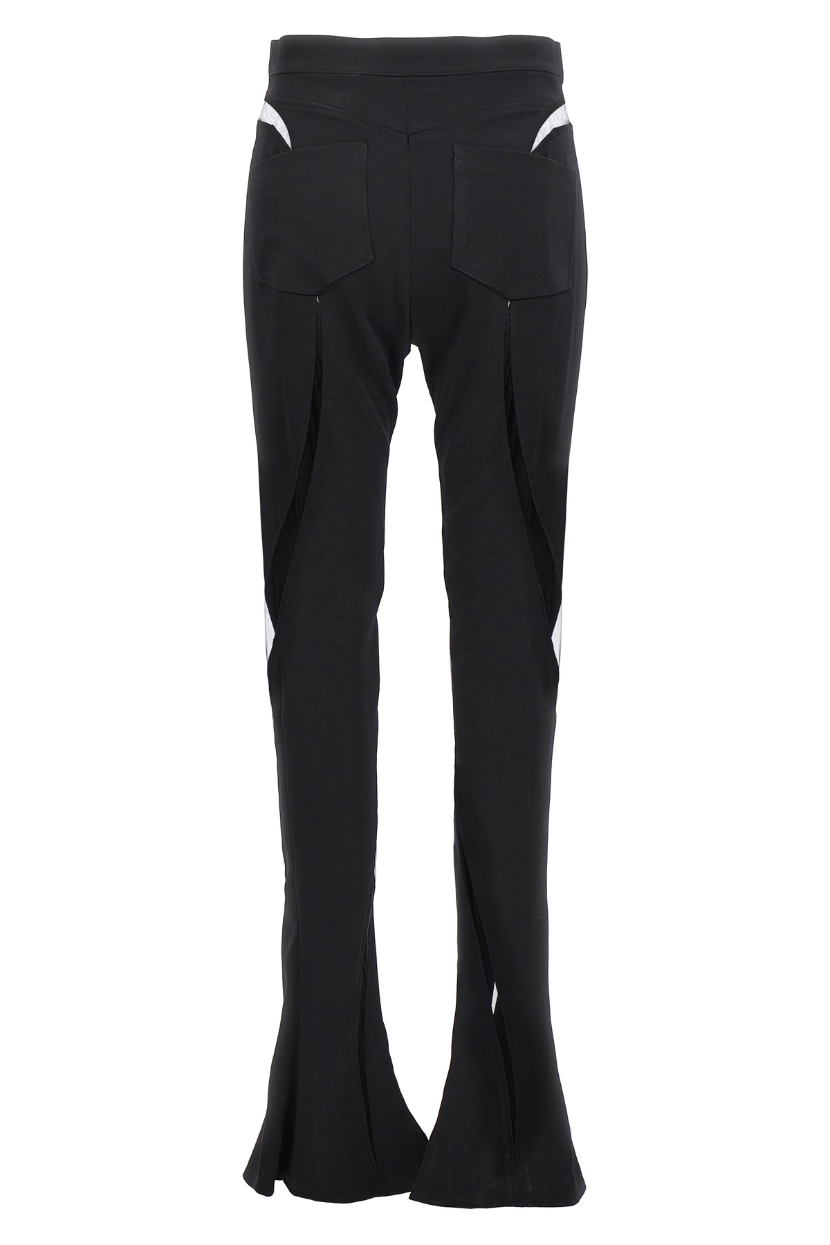 'Illusion' pants in stretch viscose blend with transparent tulle inserts, zip and button closure.