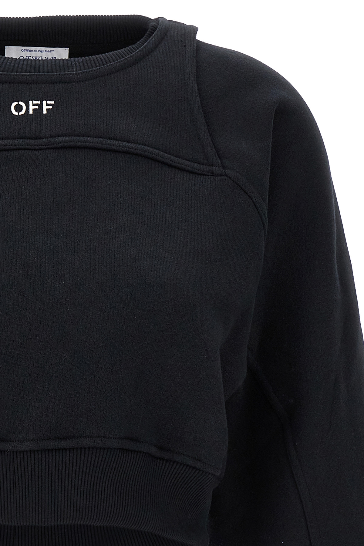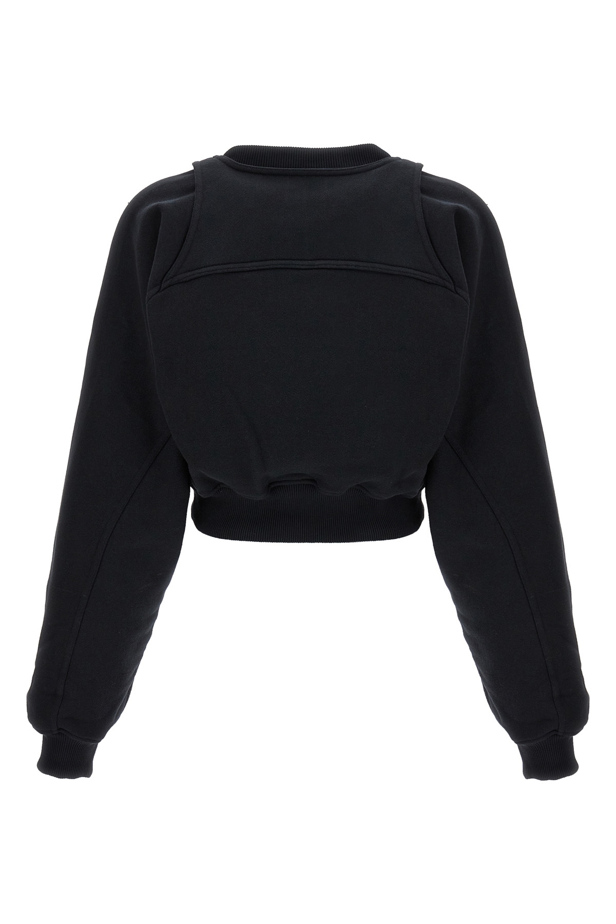 Felpa in cotone con ricamo logo frontale, girocollo, manica lunga con polsino, modello cropped.