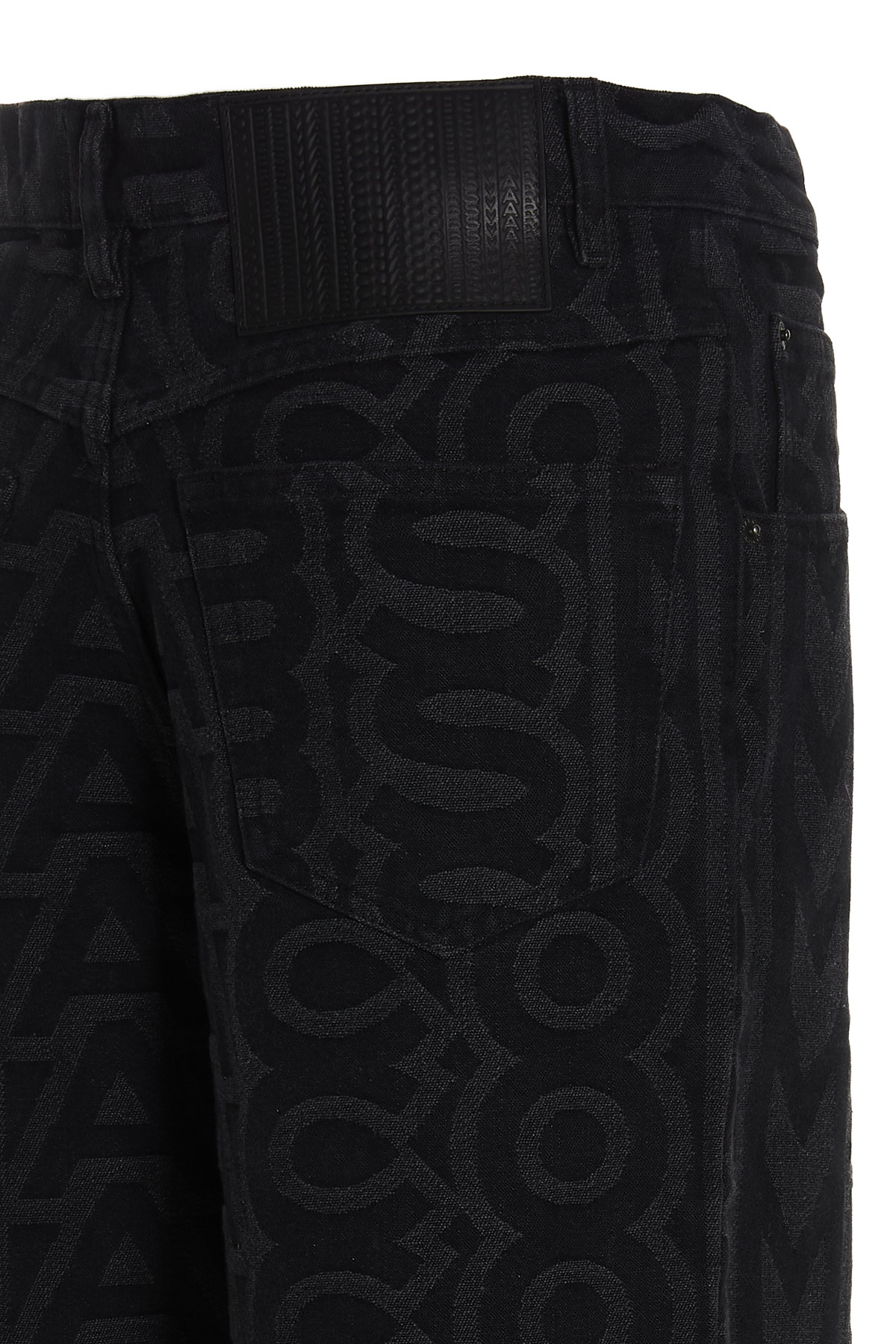 'Monogram' cotton blend denim jeans with all-over logo pattern, a zip and button closure, five pockets and a leather tag.