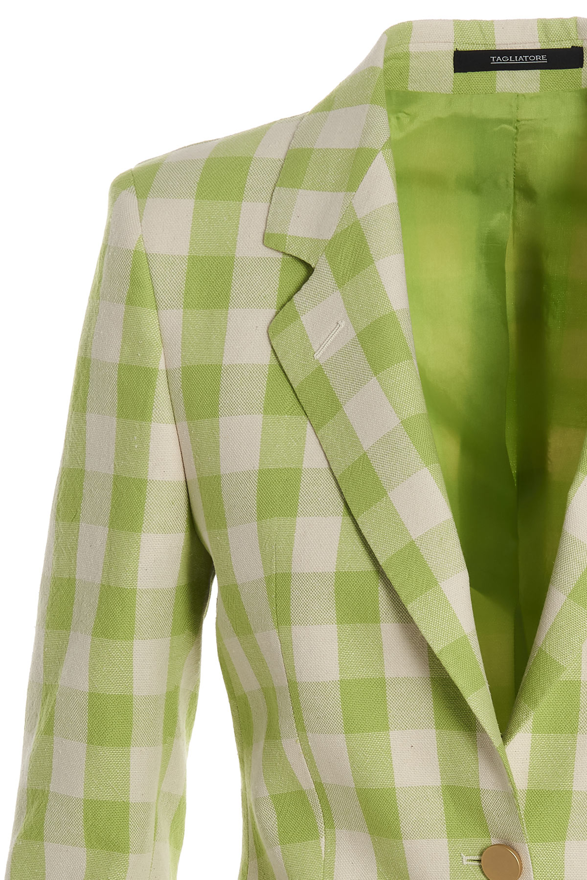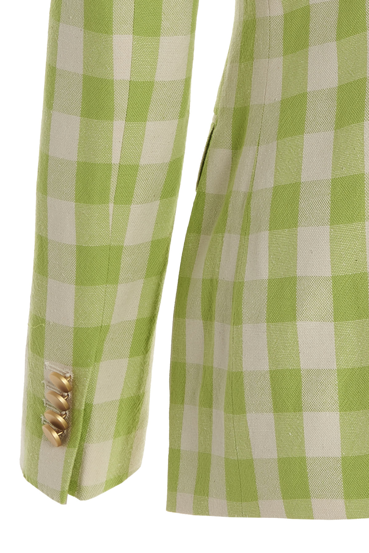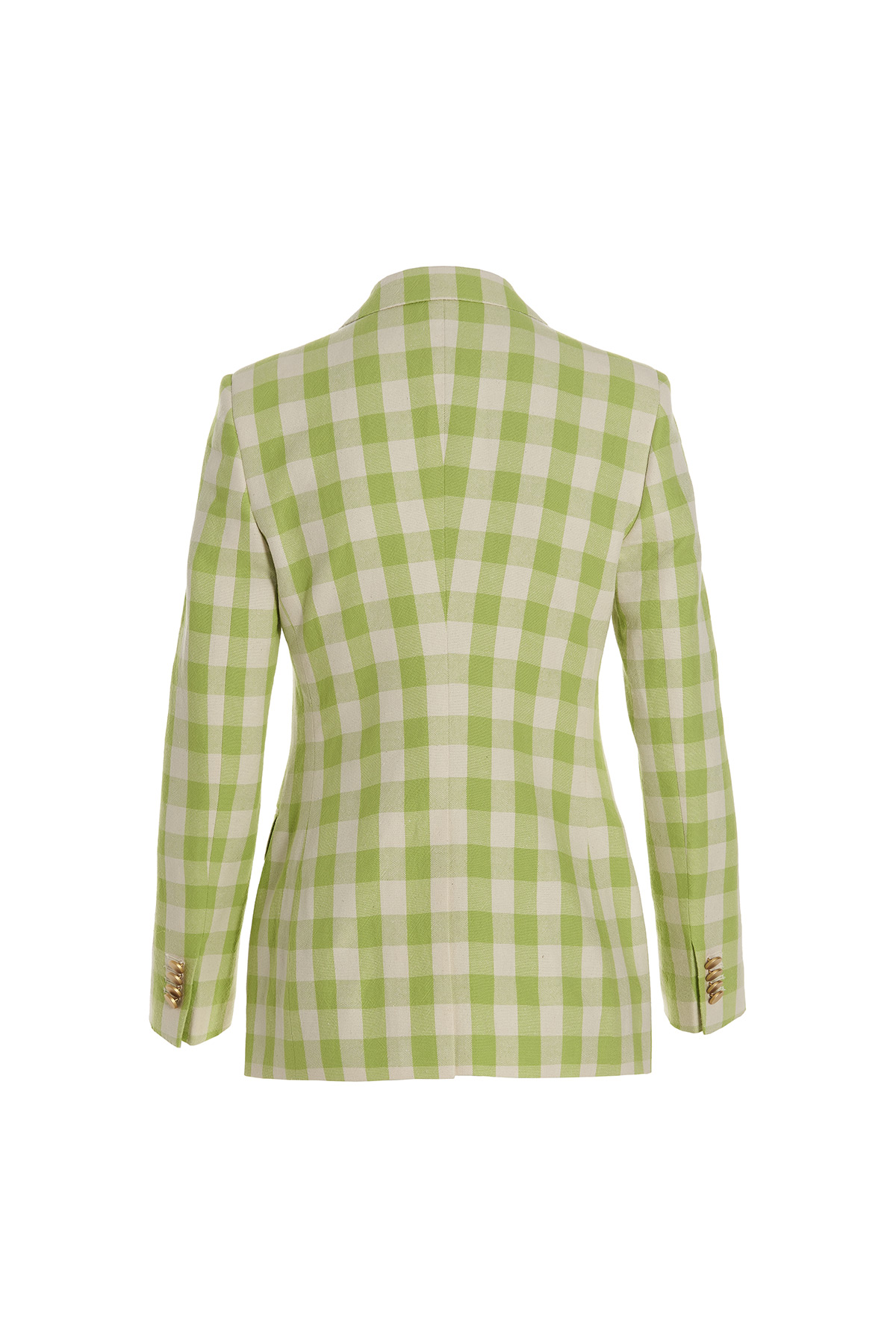 Single breast, checked cotton blend 'Parigi' blazer jacket with button closure, peak lapels, pockets, long sleeves, back split and padded shoulders.