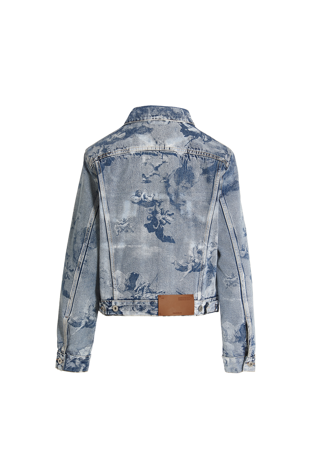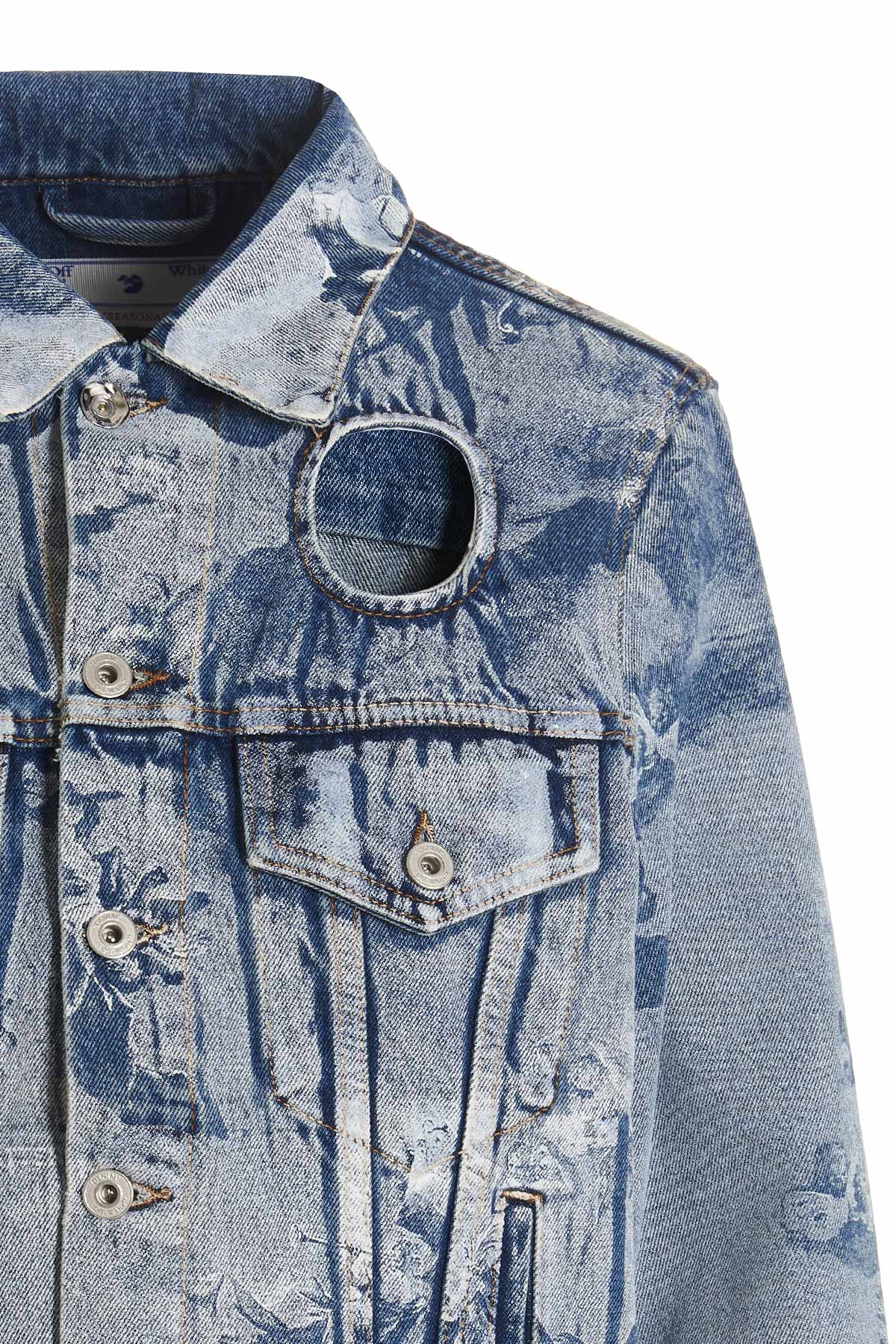Sky meteor' all-over devore effect, rubberized texture denim jacket with cut-outs and a button closure.