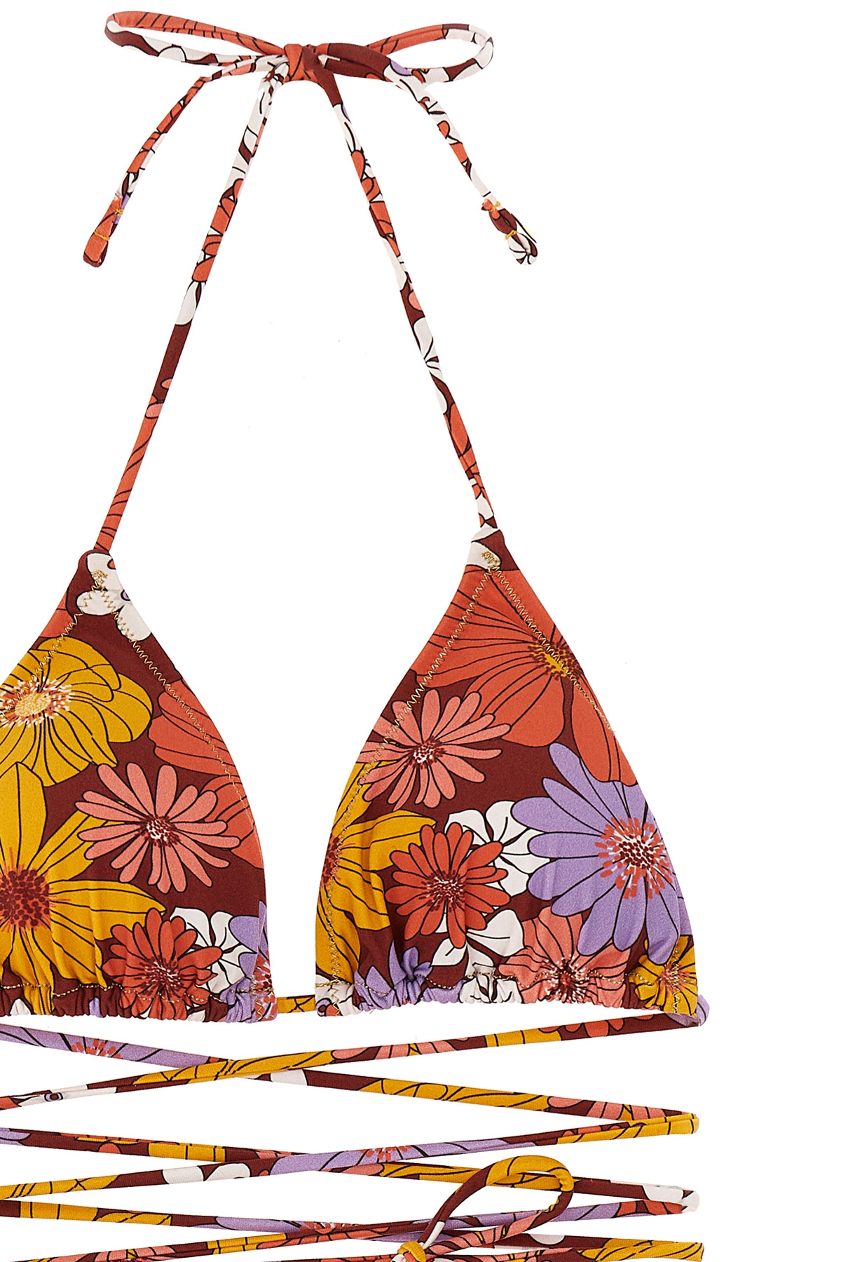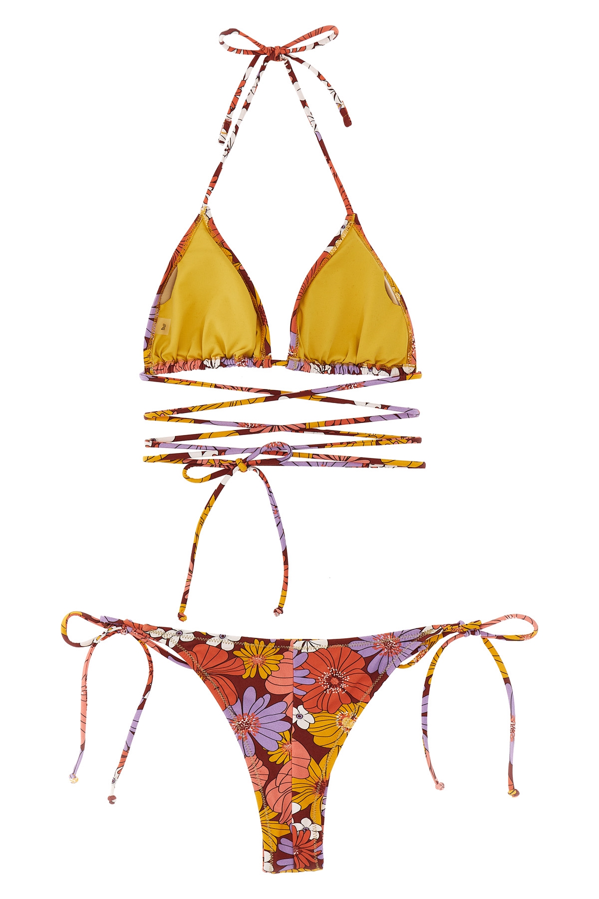 Miami' floral print stretch bikini with triangle top with removable cup, lacing and leg bottoms with lacing.