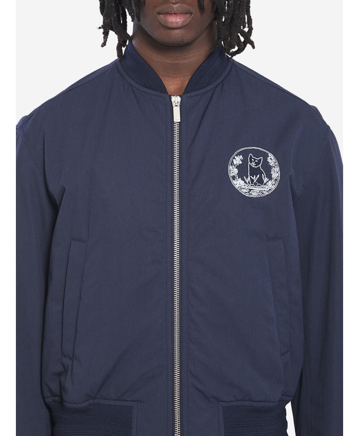 Dior And Hylton Nel bomber jacket in navy blue cotton blend. It features a front zip closure, two welt side pockets, a white Dior And Hylton Nel