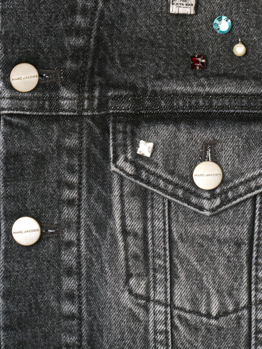 black front button fastening two chest flap pockets buttoned cuffs applique logo