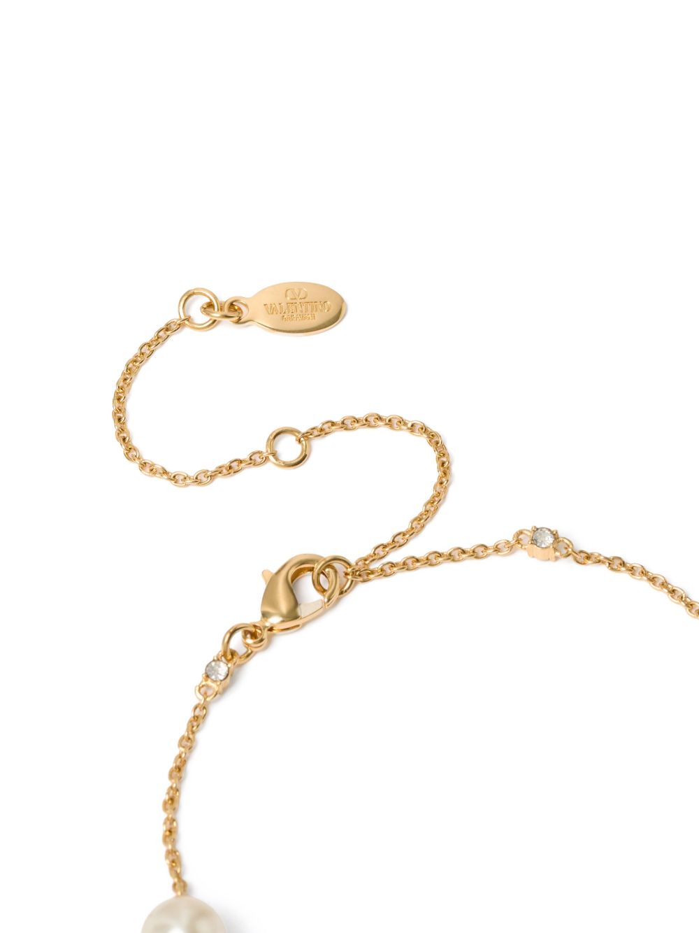 gold-tone polished finish delicate chain crystal embellishment faux-pearl detailing VLogo Signature lobster claw fastening adjustable fit