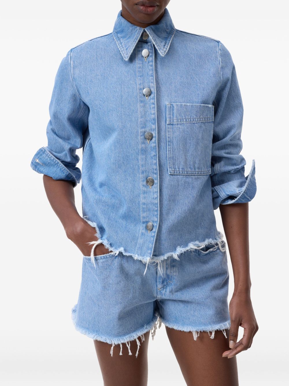 light blue front button fastening long sleeves chest patch pocket buttoned cuffs