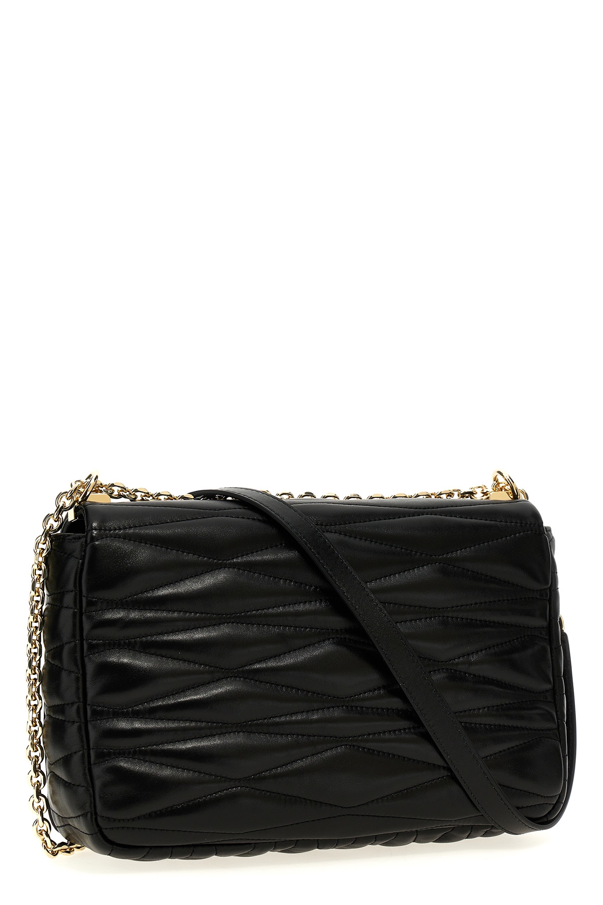 '1927 M' woven nappa leather crossbody bag, sliding leather and chain shoulder strap, turn lock closure with metal logo.