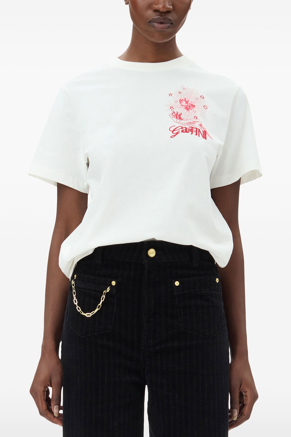 'Celestial Poster' cotton T-shirt with print and embroidery on the front and back, crew neck, short sleeves. SUSTAINABLE: This product is made with organic cotton.