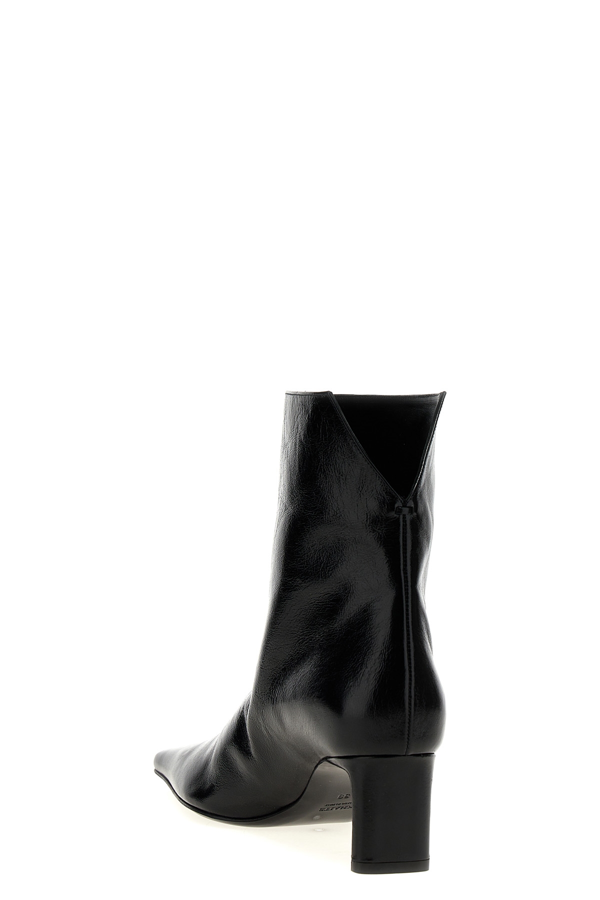 'Ona' leather ankle boots, slip on model with ankle slit, square toe, blade heel.