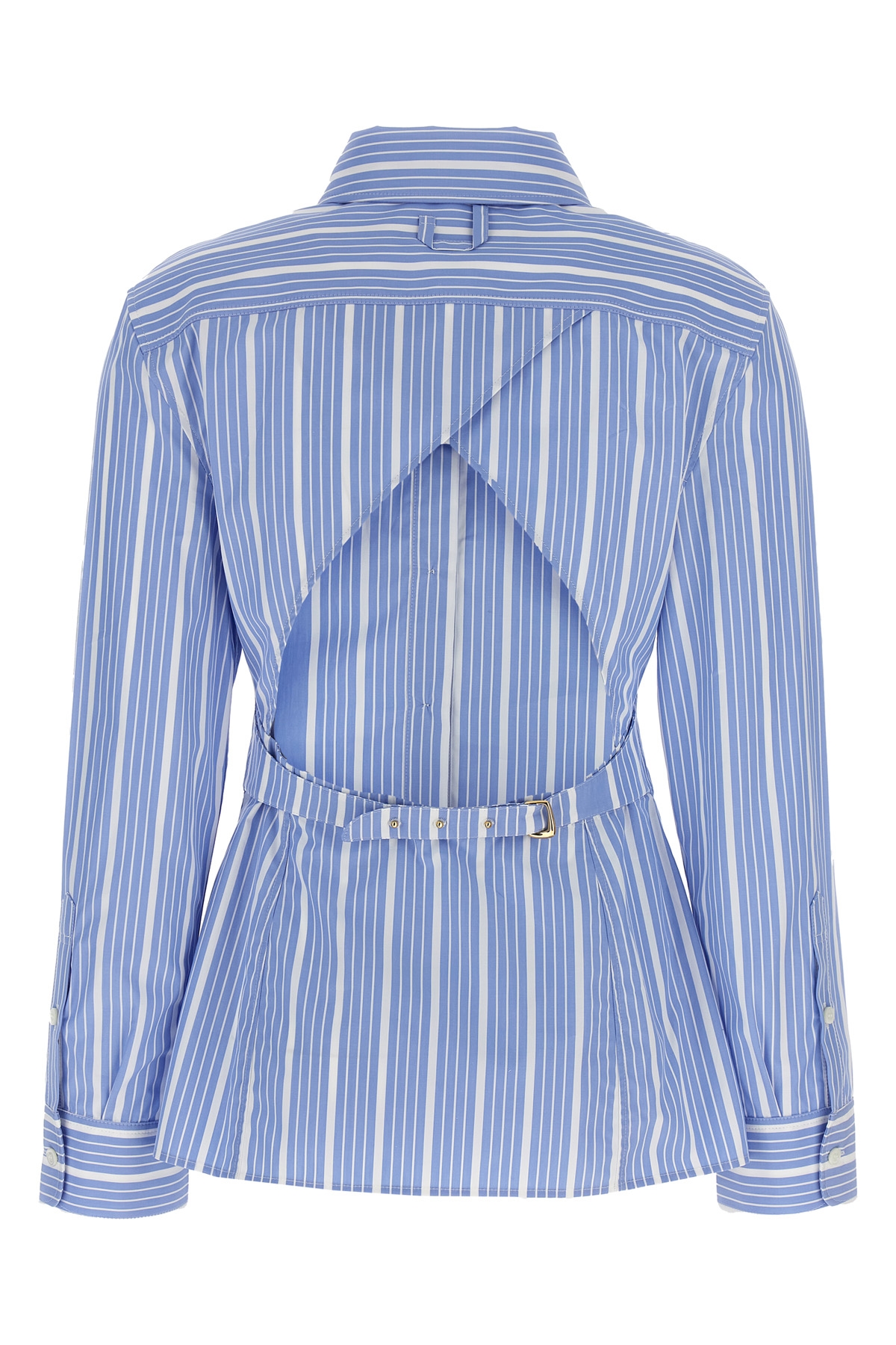 'Chemise De Costume' cotton poplin shirt with jacquard logo, front button closure, long cuffed sleeves, back cut-out detail and adjustable strap