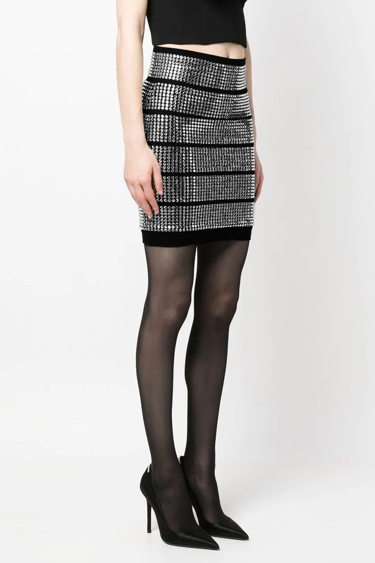 'Crystallized’ skirt featuring an all over sequin applique, and a back zipper closure.