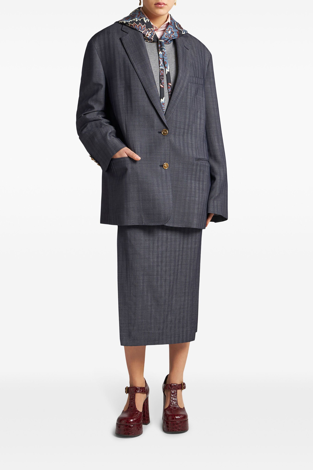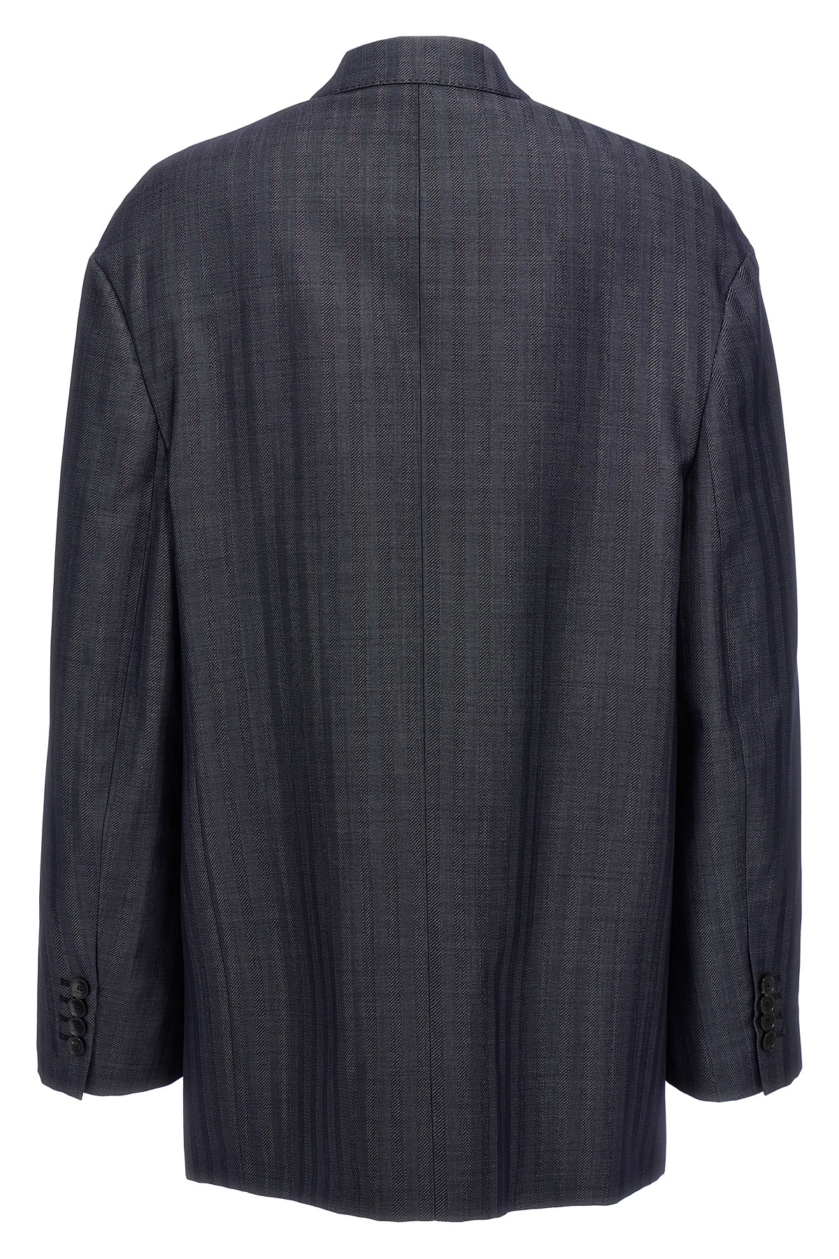 Striped single-breasted blazer in wool blend with 'Pegaso' button closure, pockets, long sleeves.