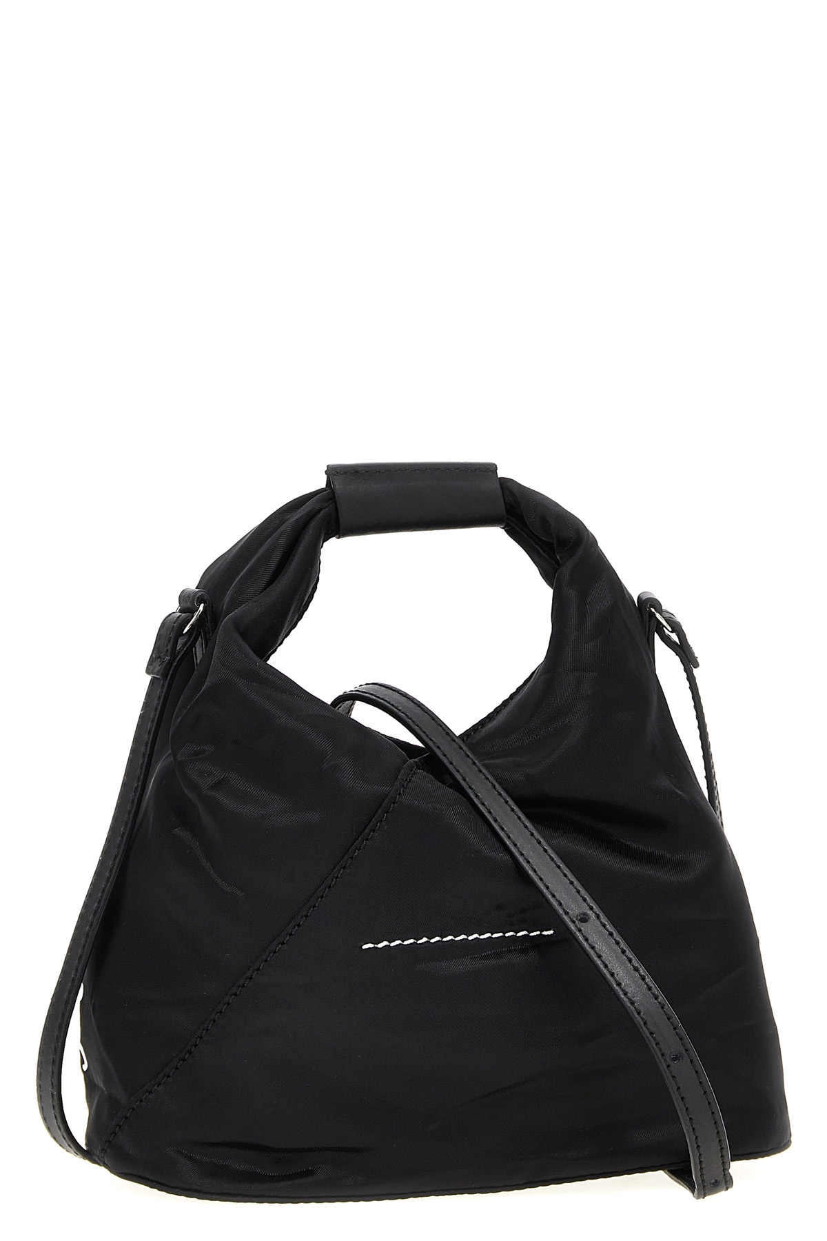 'Japanese' fabric crossbody bag with front logo print, detail on the handle and adjustable leather shoulder strap.