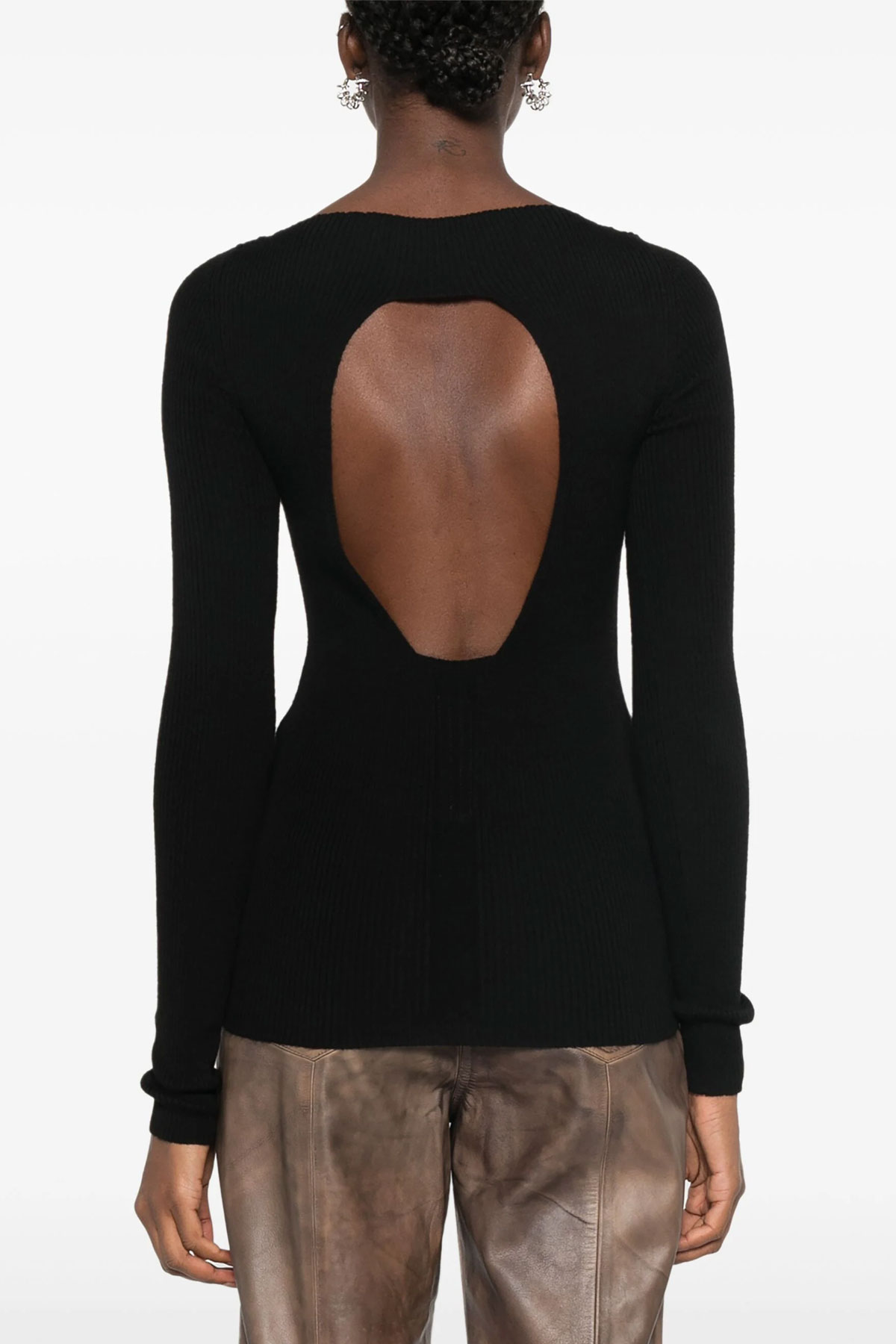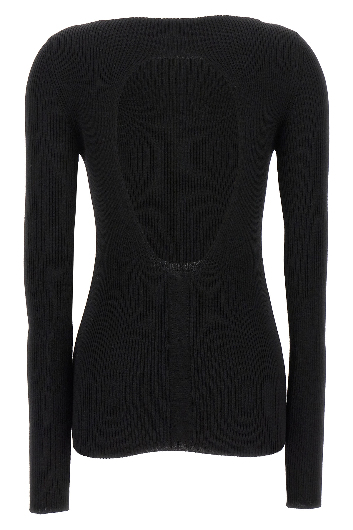 'Al Top' ribbed wool sweater with boat neck, long sleeves, back cut-out.