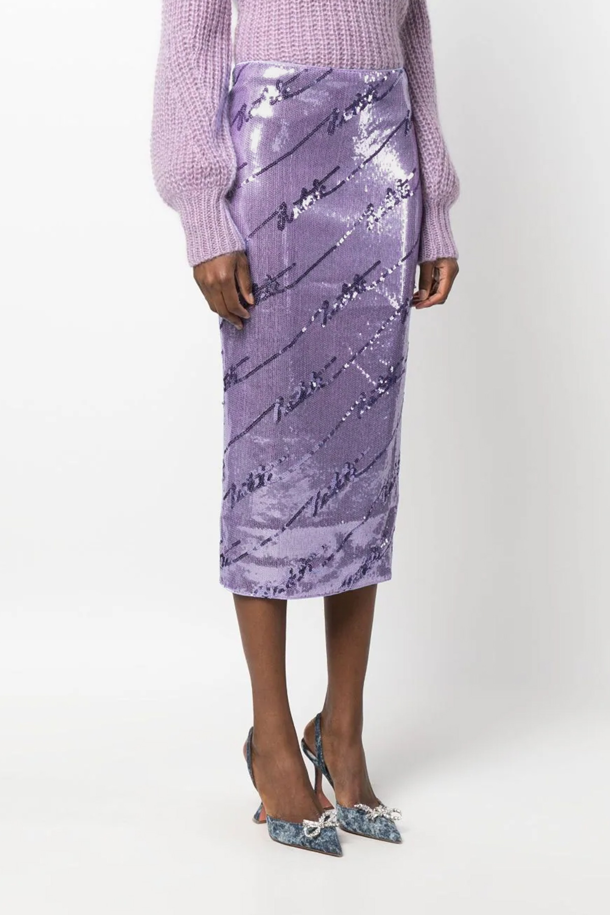Sequin midi skirt, stretch fabric with invisible zip closure.